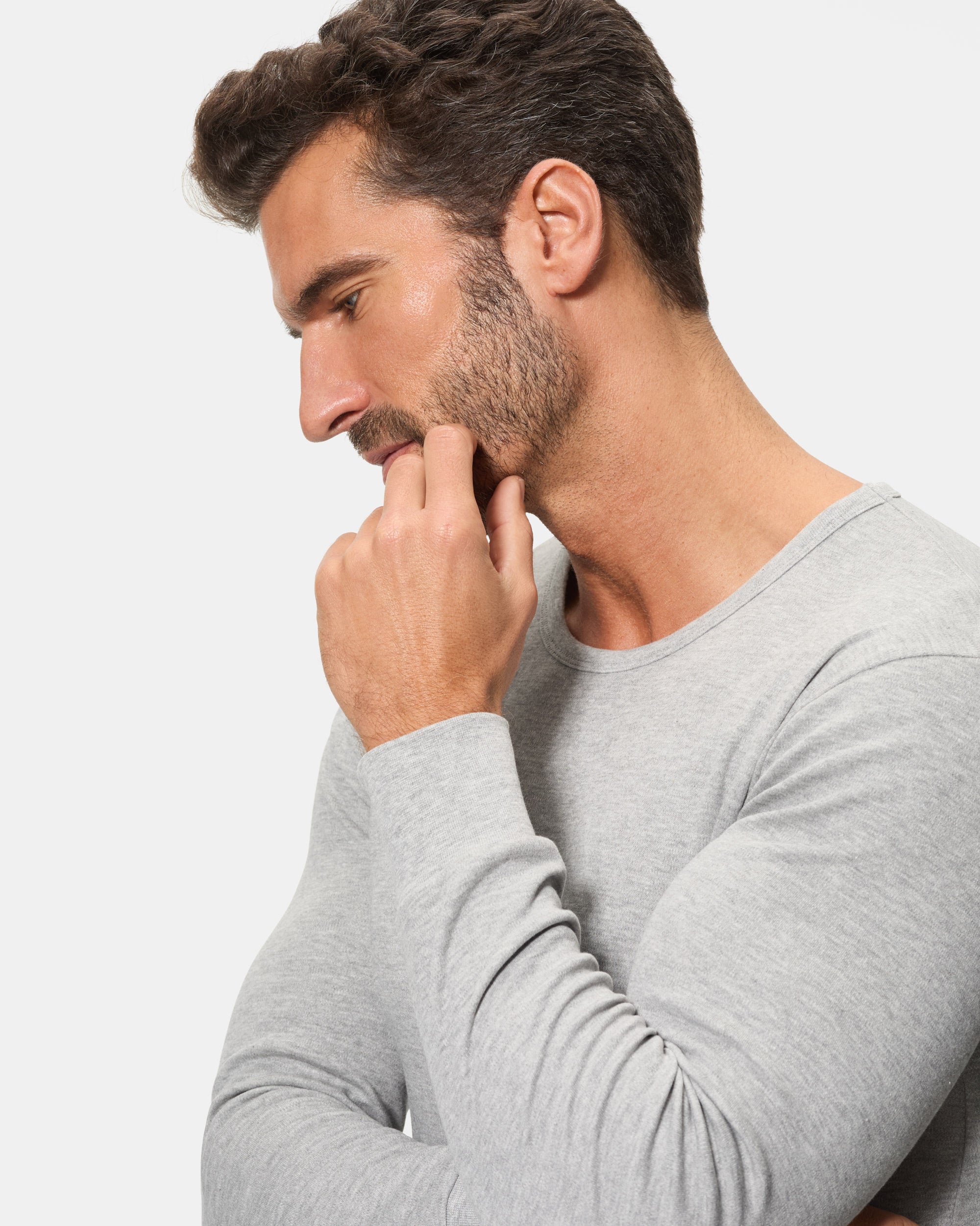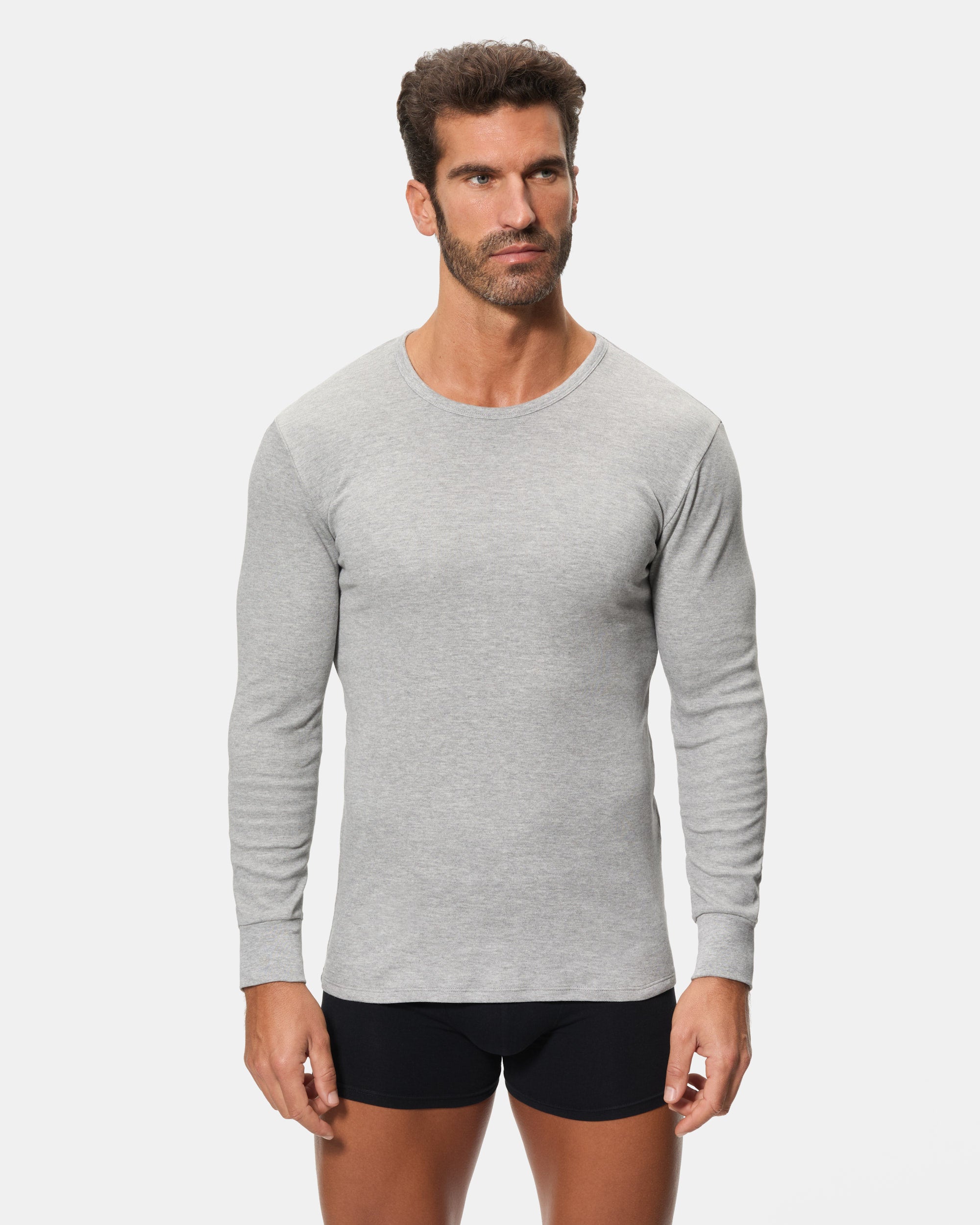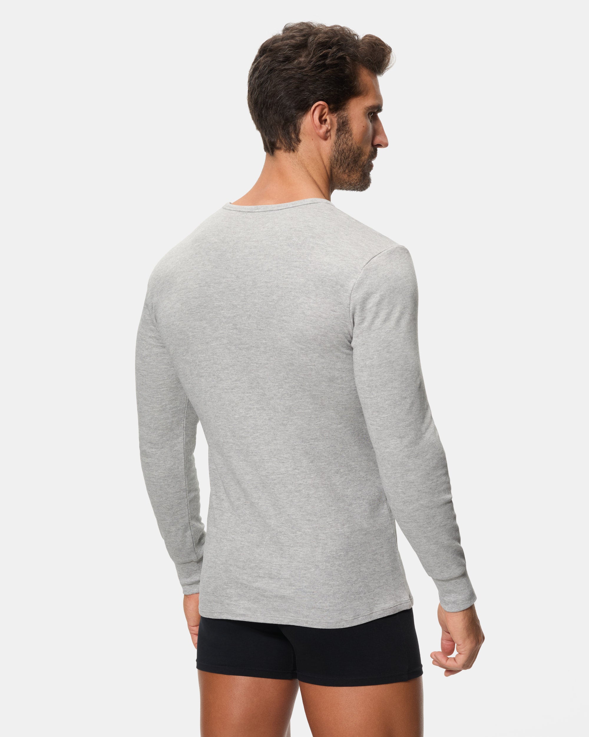 Long-sleeve thermal T-shirt with round neck for MEN, made with 100% cotton and smooth Interlock fabric. This knit fabric is characterized by its softness, elasticity and high durability, thanks to the interlocking process. In addition, its plush interior provides extra warmth, ideal for keeping you warm and comfortable all day long. The Dark gray color is elegant and easy to match, ideal for keeping a simple yet sophisticated style.