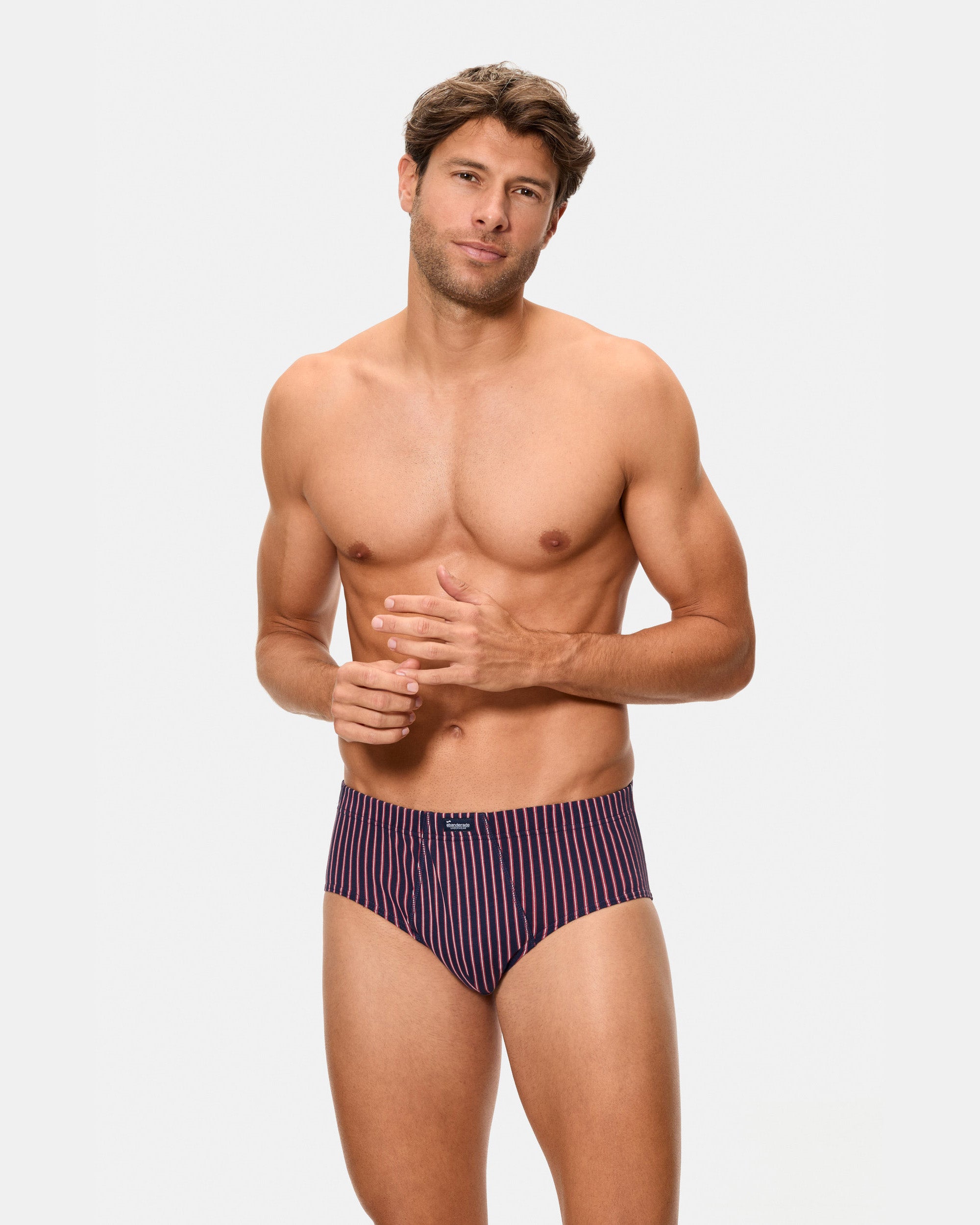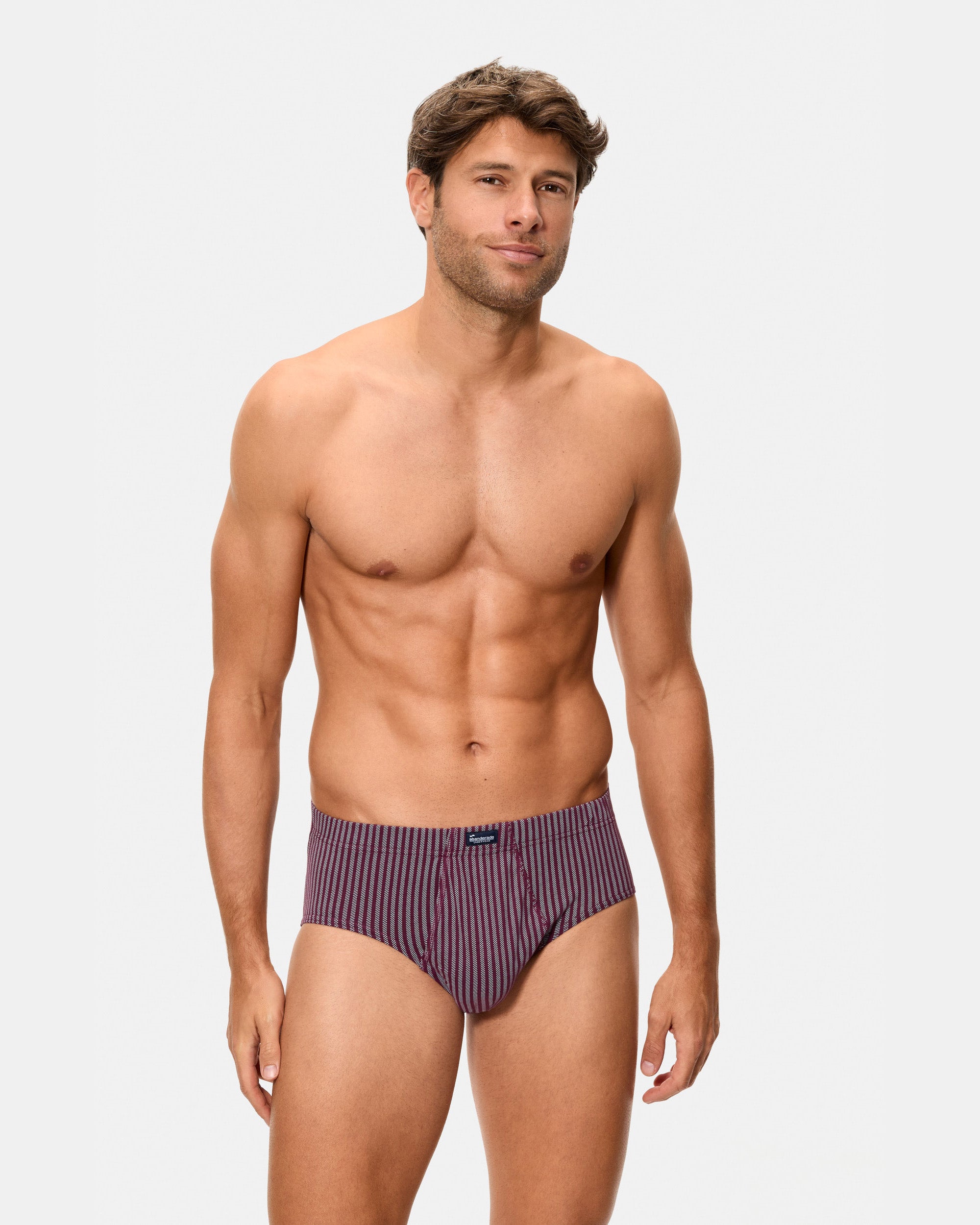 This 3-pack of open briefs in Maroon Blue with Stripes is made of 100% cotton, providing exceptional softness and comfort. With a masculine design and a classic pattern, the briefs feature a sober and elegant micro print in shades of maroon and blue. The covered elastic waistband ensures a snug fit, while the plain knit fabric allows for ideal breathability, keeping you dry all day long. The opening in the front offers maximum comfort.