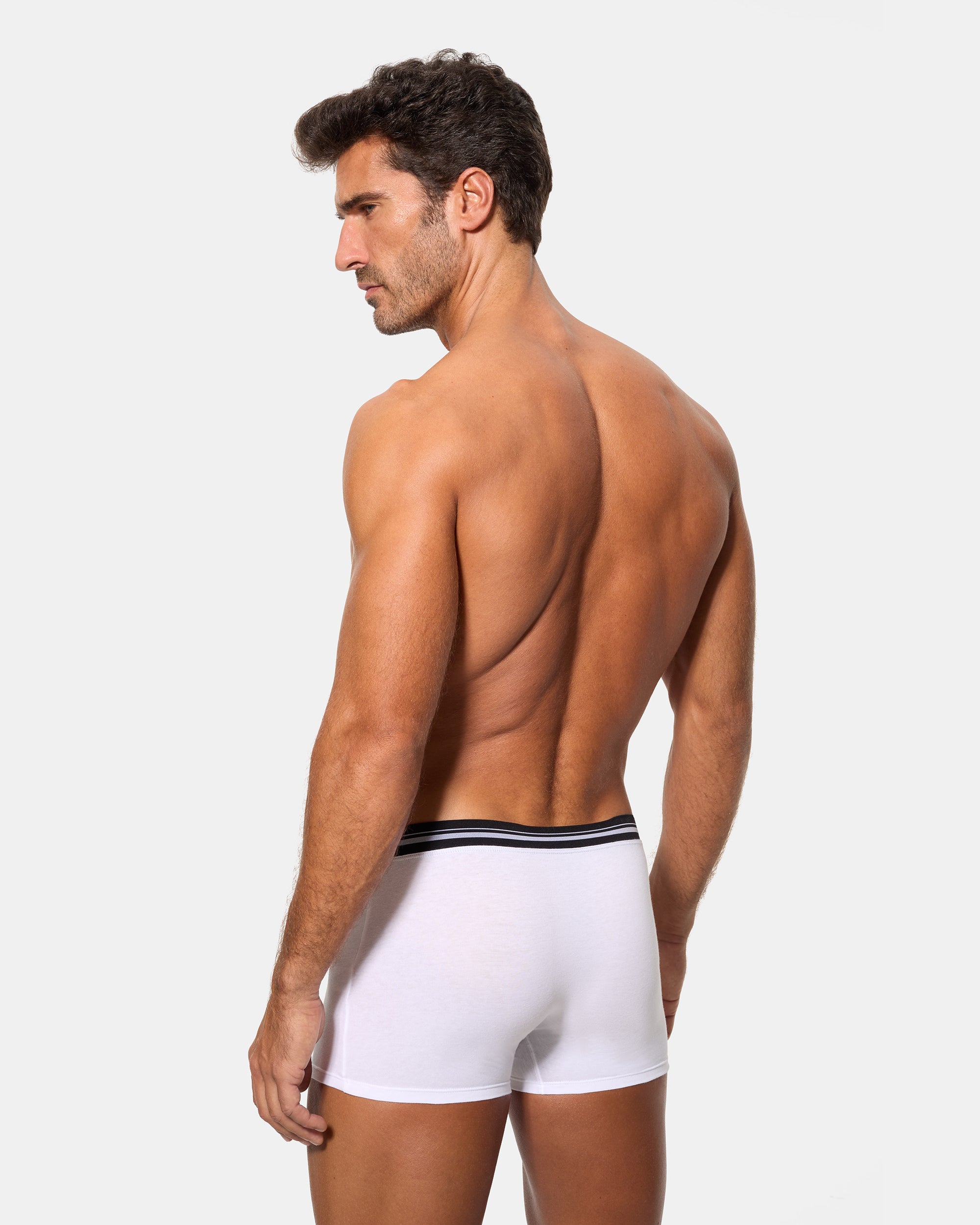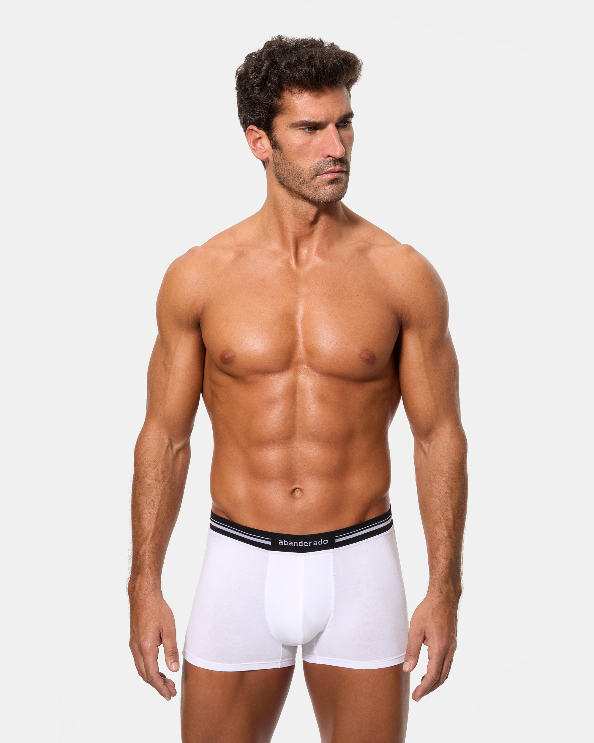 Este bóxer cerrado para hombre en color blanco está confeccionado con algodón elástico de máxima calidad, garantizando un ajuste perfecto. Su cinturilla elástica extra suave se adapta a la morfología masculina, ofreciendo un ajuste cómodo sin marcar la piel. Un calzoncillo extra cómodo y elegante, ideal para mantenerte impecable durante todo el día.