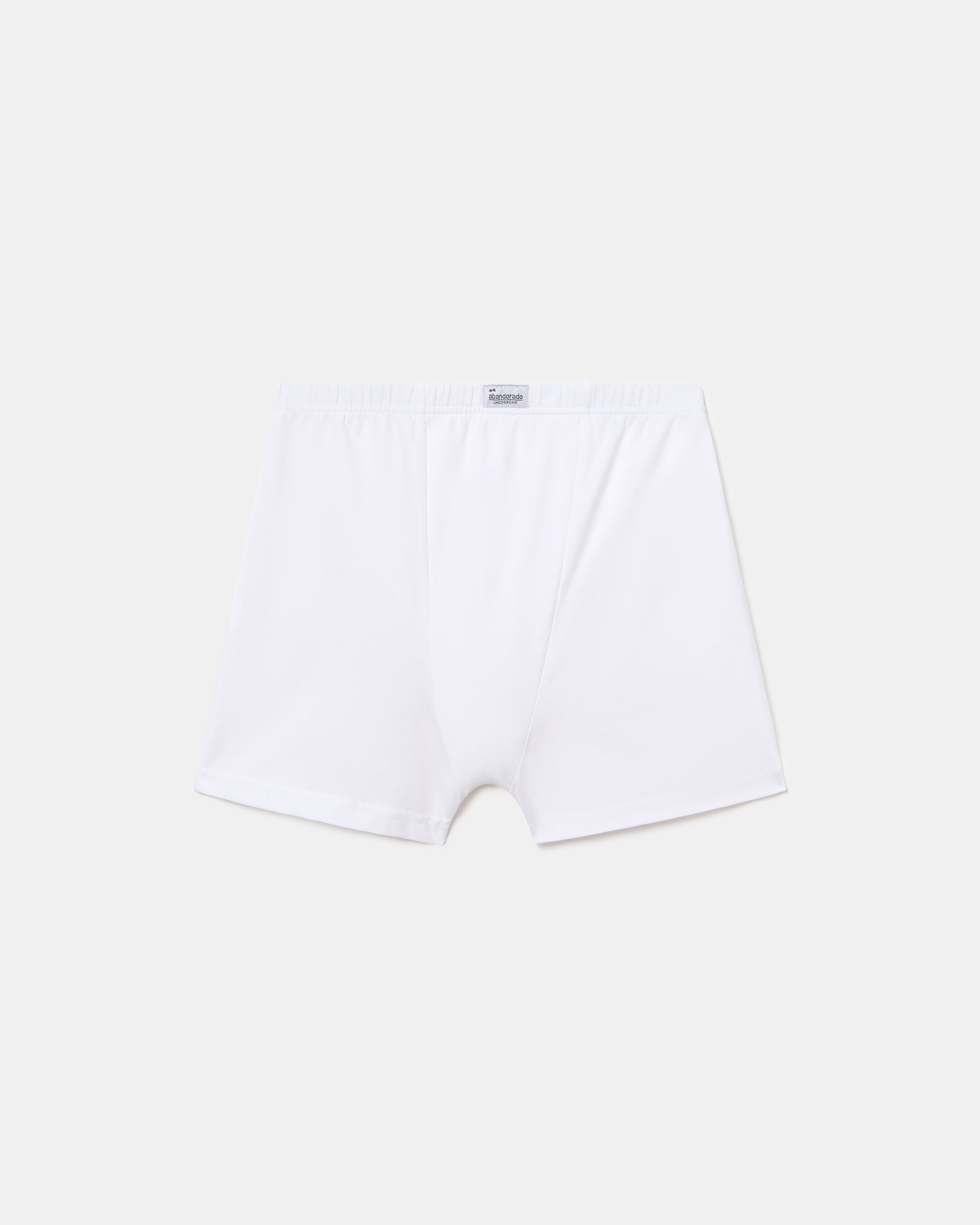 Bóxer cerrado para niño confeccionado en algodón elástico de máxima calidad y tejido de punto liso. Su estilo básico y tejido suave proporcionan la máxima comodidad y confort, con total adaptabilidad al cuerpo. Características destacadas: Hecho de algodón elástico para un ajuste cómodo y adaptable. Con un 93% algodón y 7% elastán Estilo básico con cinturilla elástica para mayor confort. Bóxer cerrado, confeccionado con punto liso para mayor suavidad. Disponible únicamente en color blanco. El modelo mide 145 cm y lleva una talla 8. Unidades incluidas: 1 bóxer