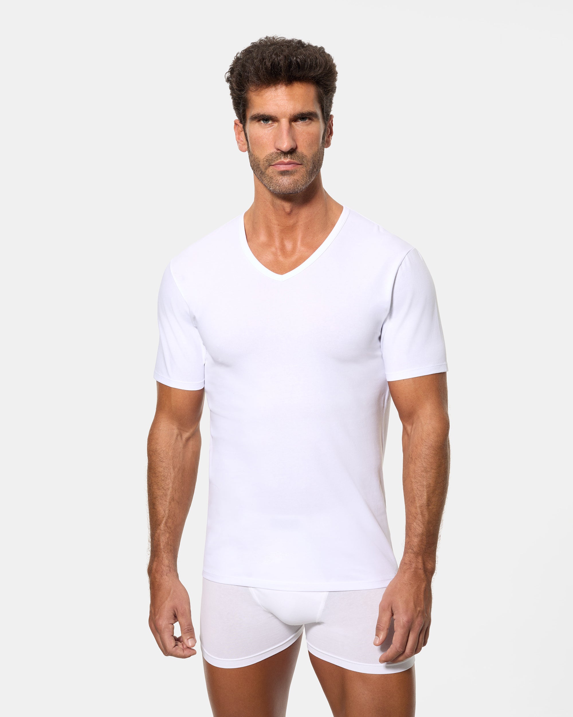 Camiseta de Manga Corta Cuello Pico Tecnología Termorreguladora Regul'activ Algodón Elástico blanca hombre