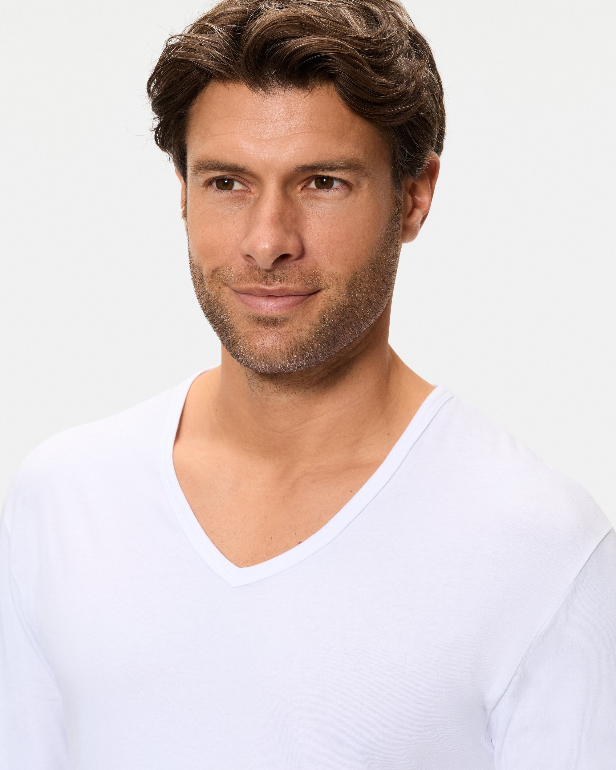 Camiseta de Manga Larga Cuello Pico Tecnología Termorreguladora Regul'activ Algodón Elástico blanca hombre