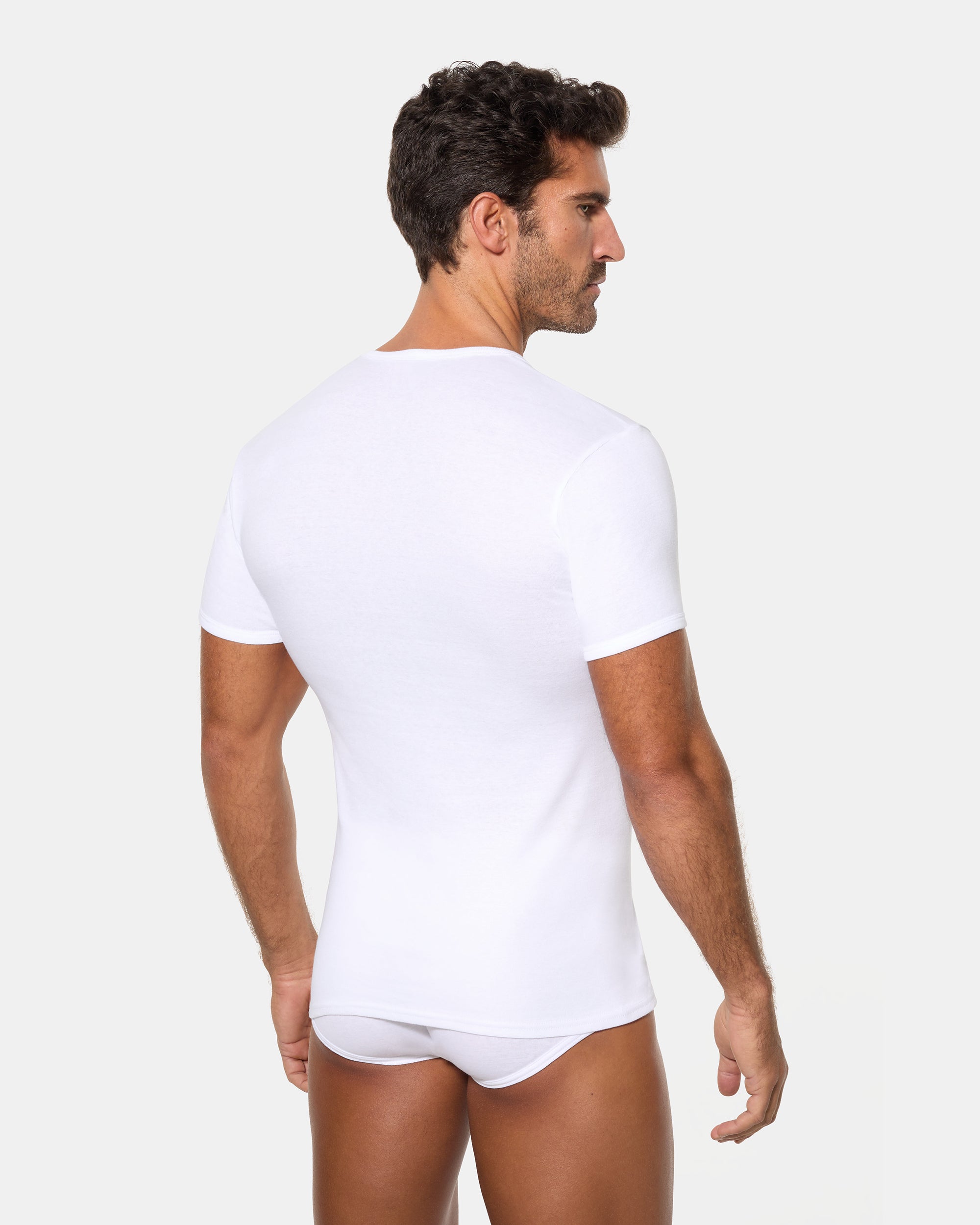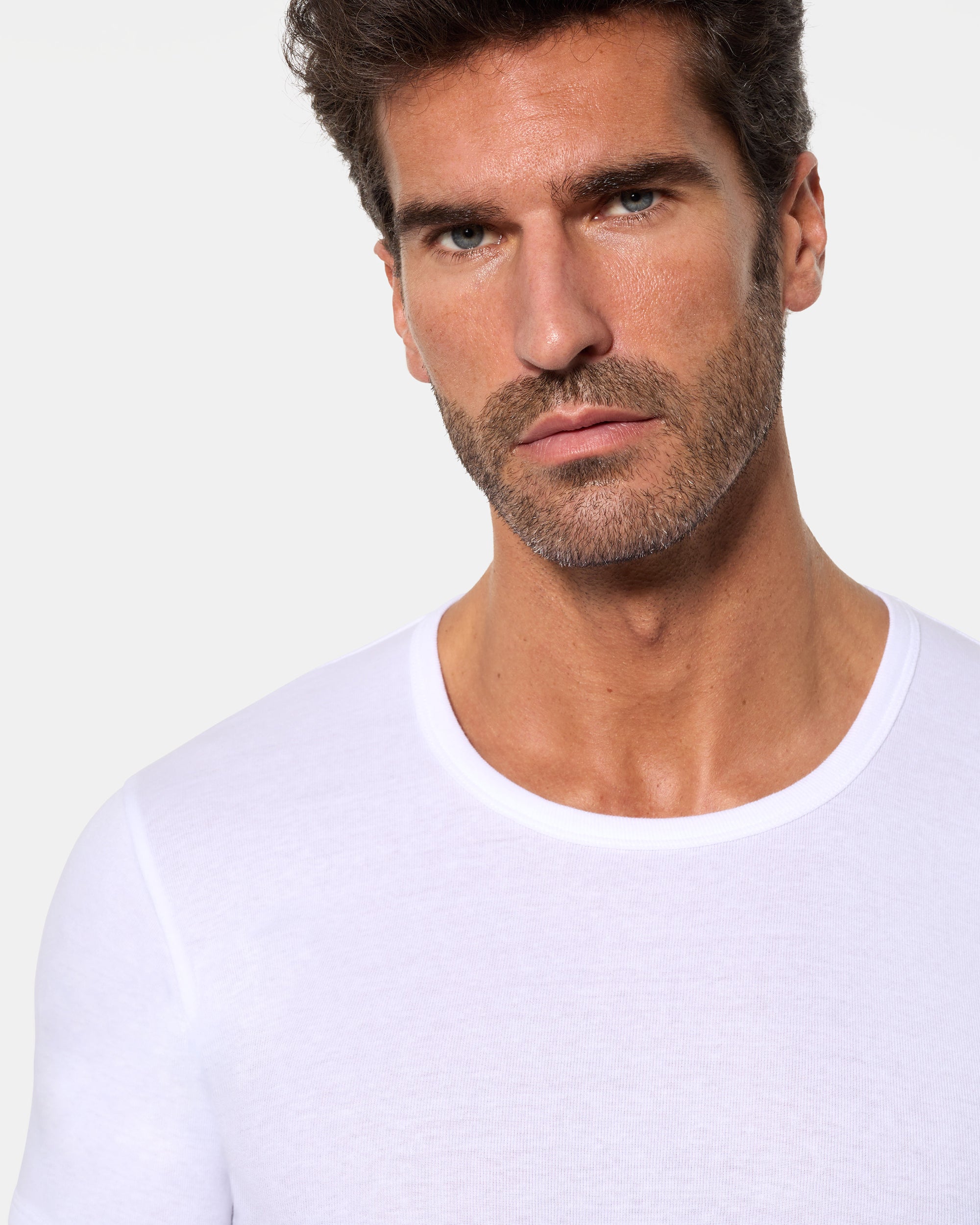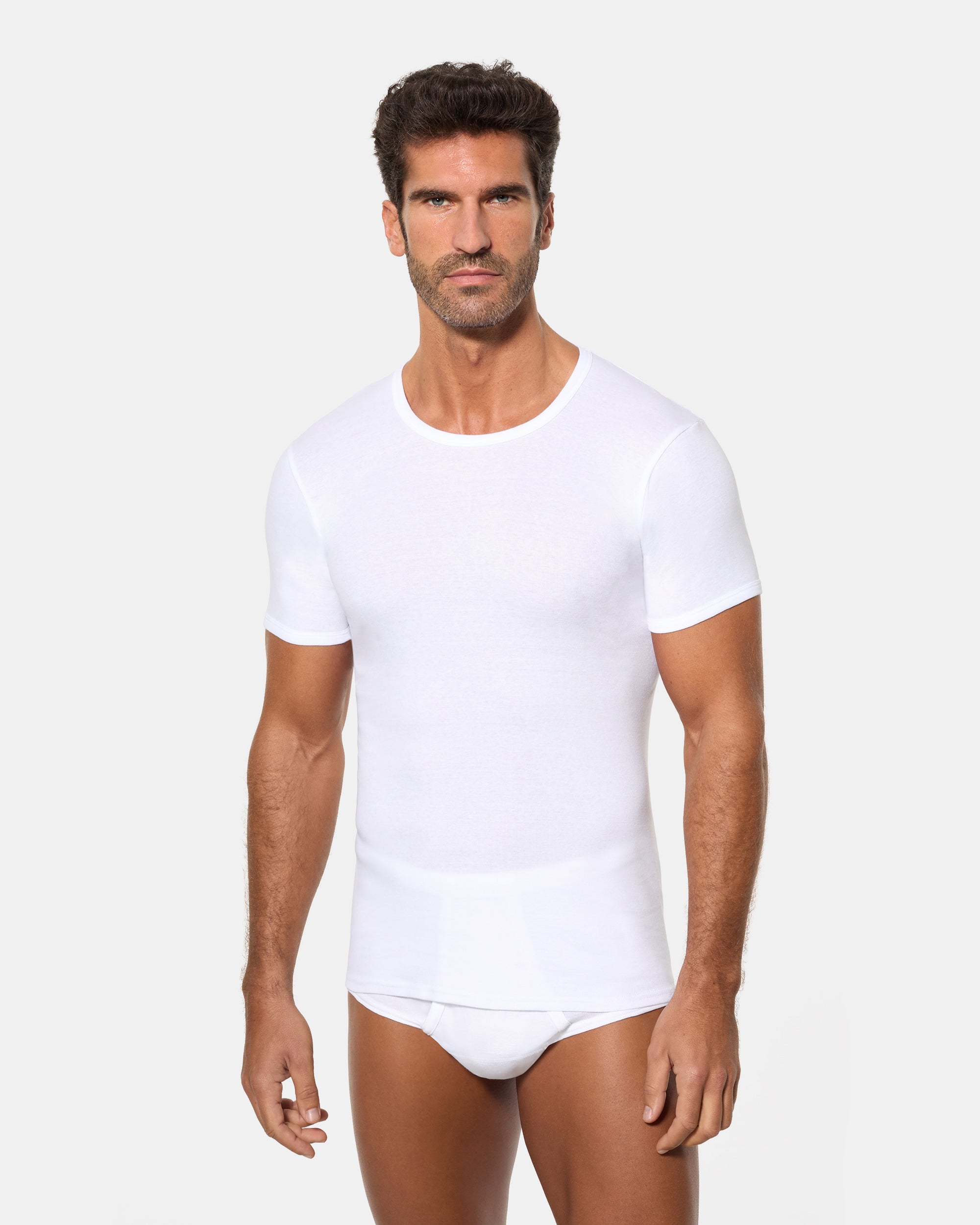Camiseta Manga Corta Corte Clásico Tejido Canalé Algodón 100% blanca hombre