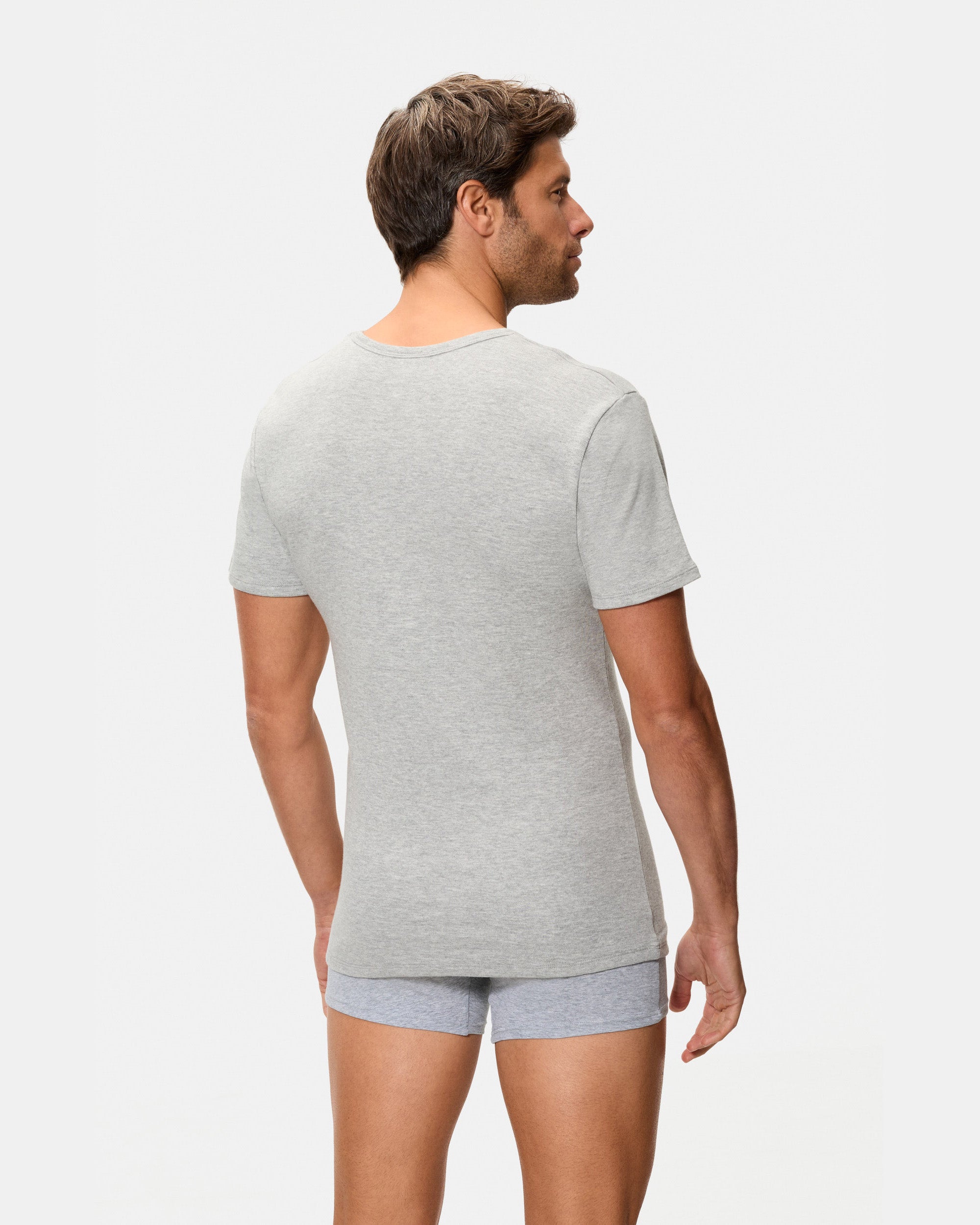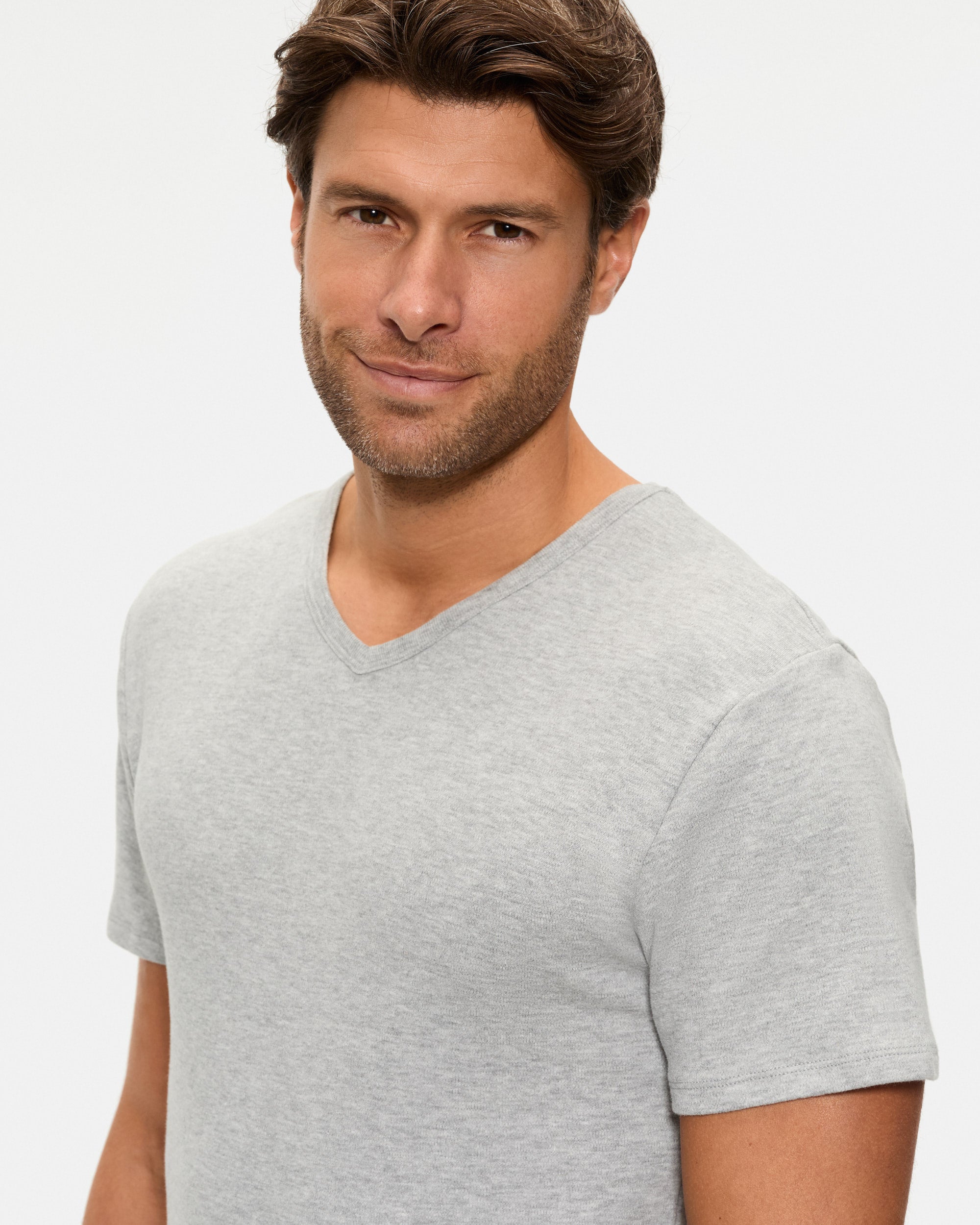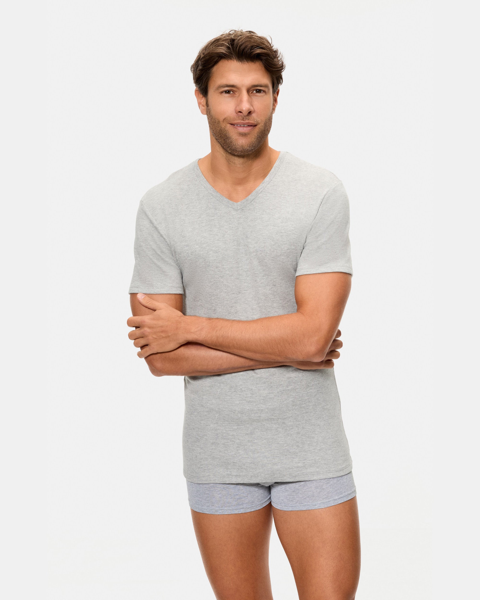 Camiseta Térmica Manga Corta Cuello Pico Algodón 100% gris oscuro hombre