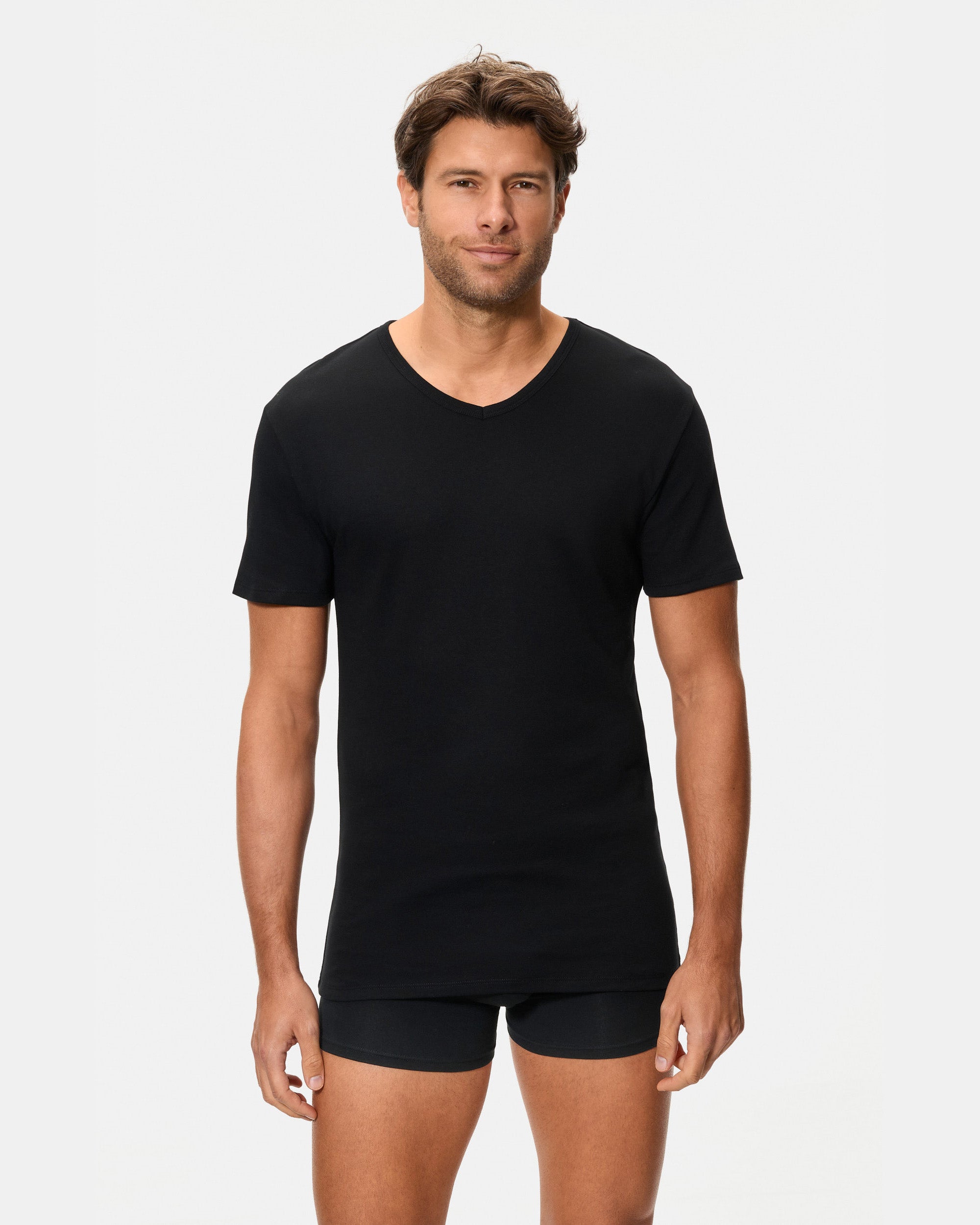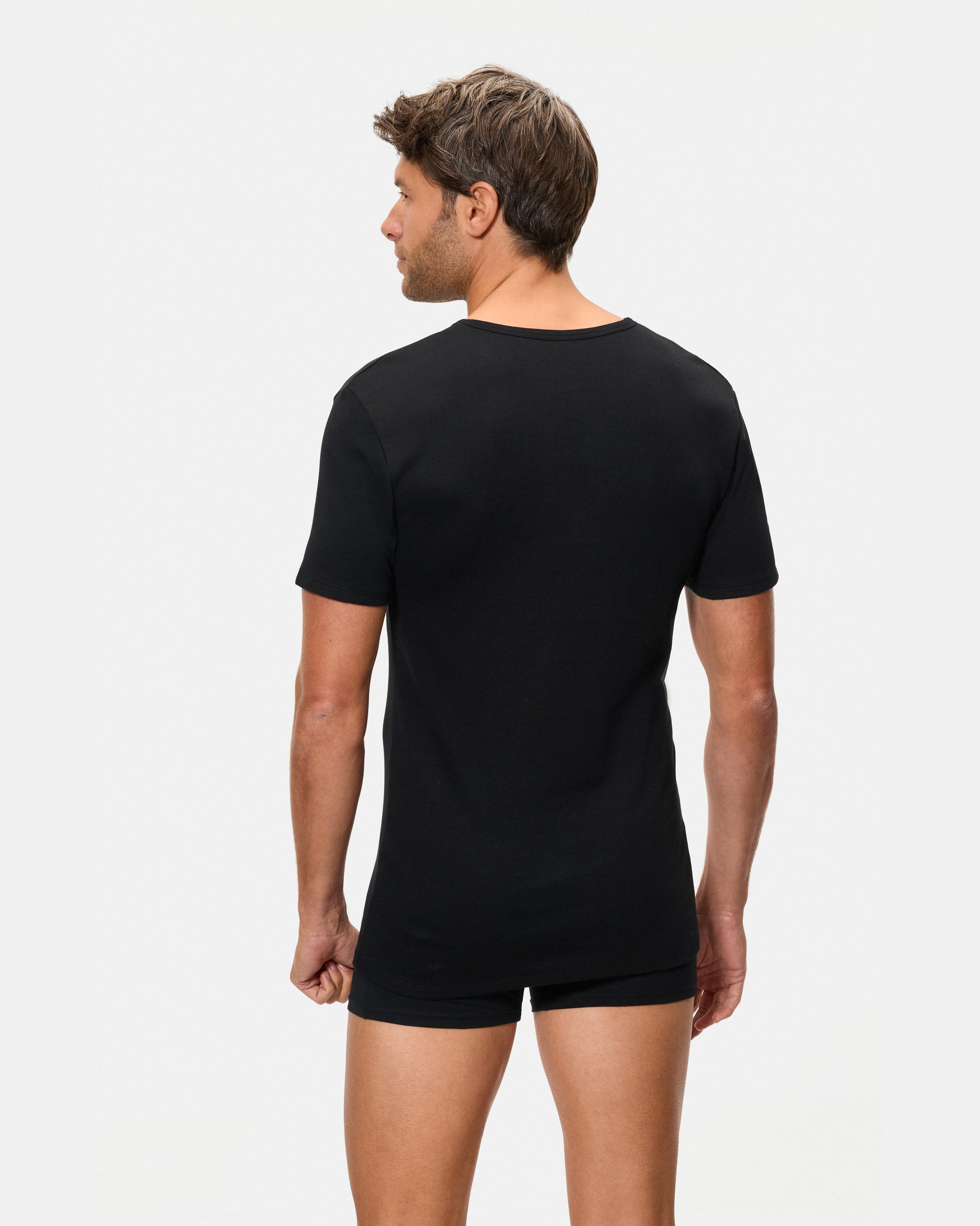 Camiseta Térmica Manga Corta Cuello Pico Algodón 100% negra hombre