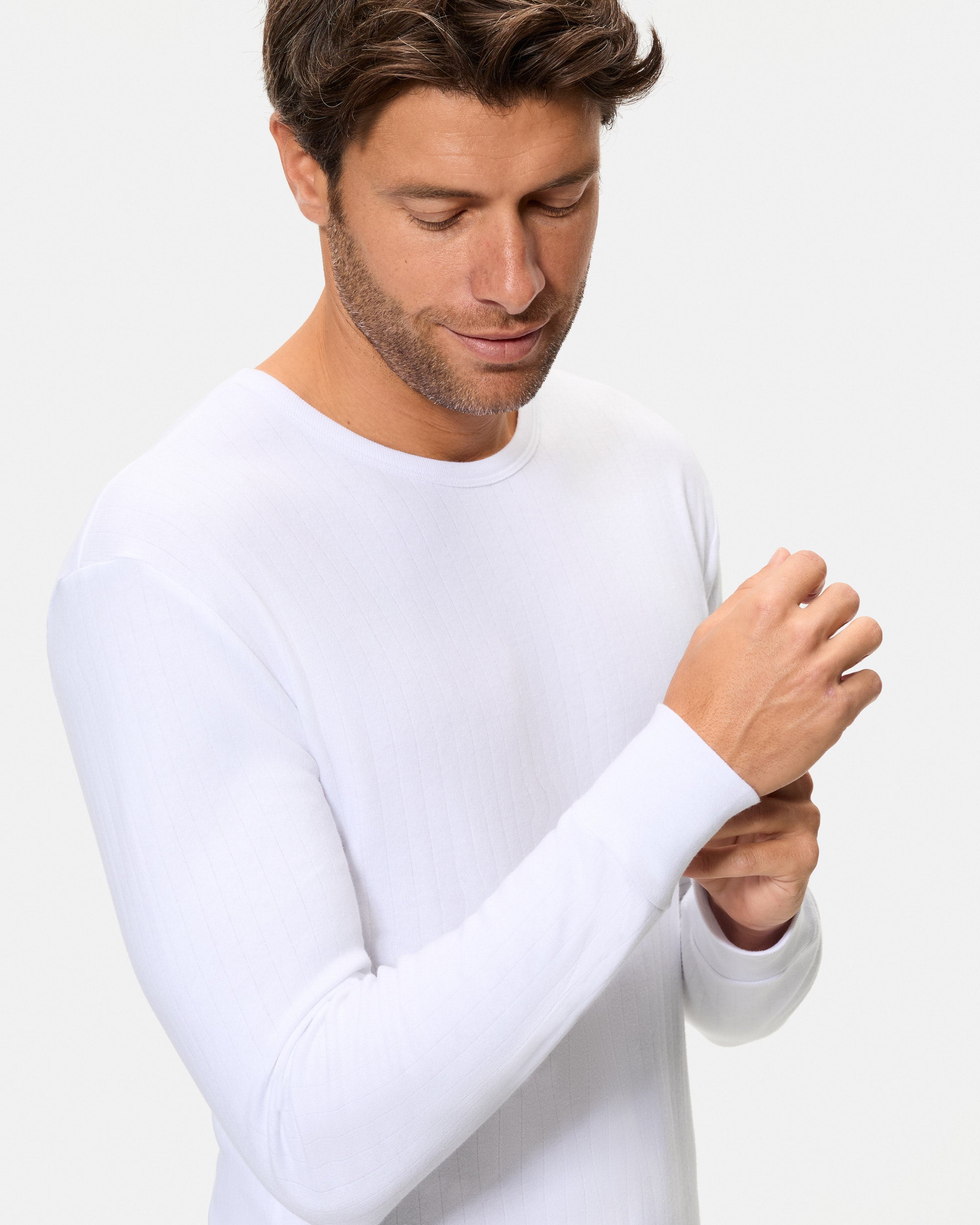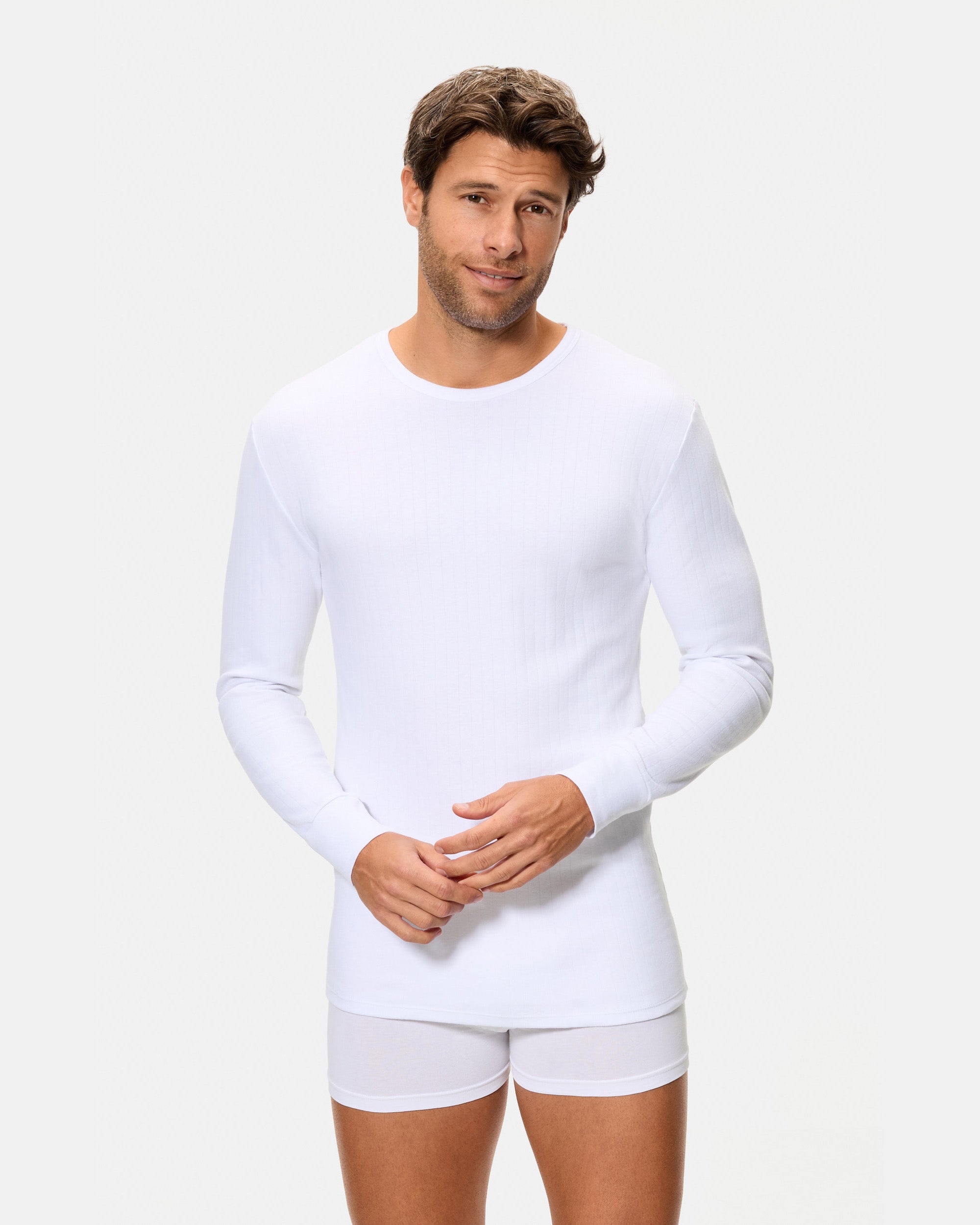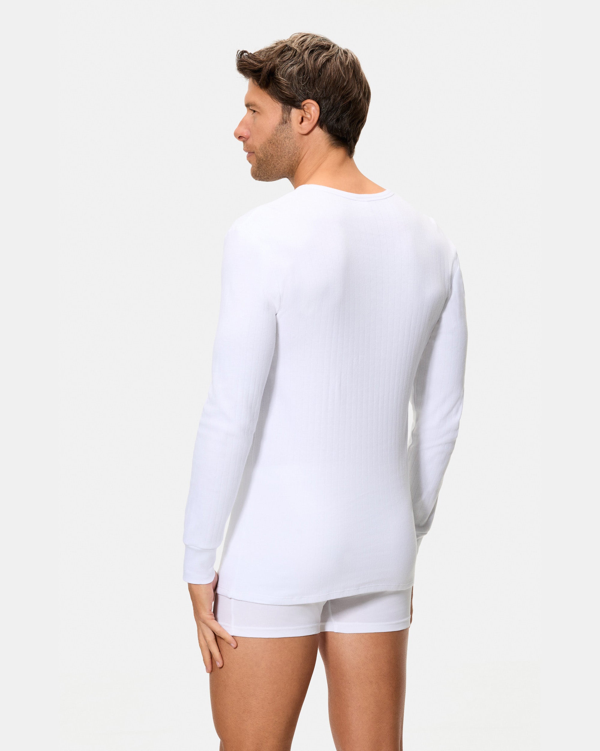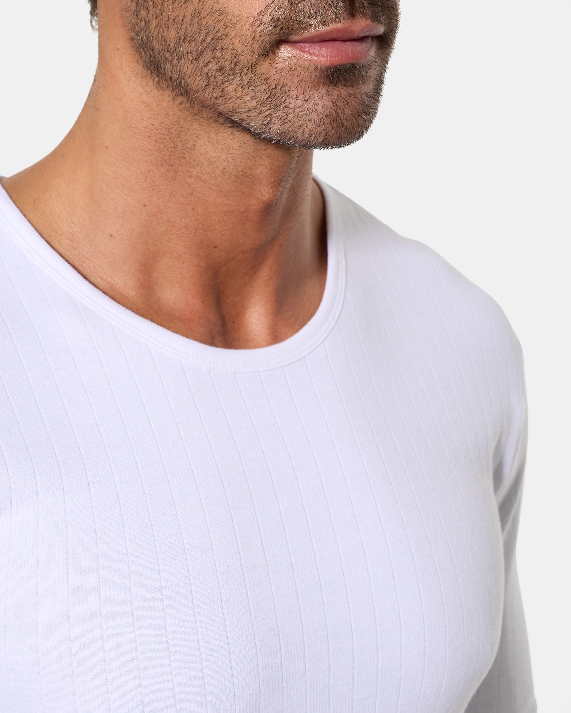Camiseta Térmica Manga Larga Cuello Redondo Algodón 100% blanca hombre