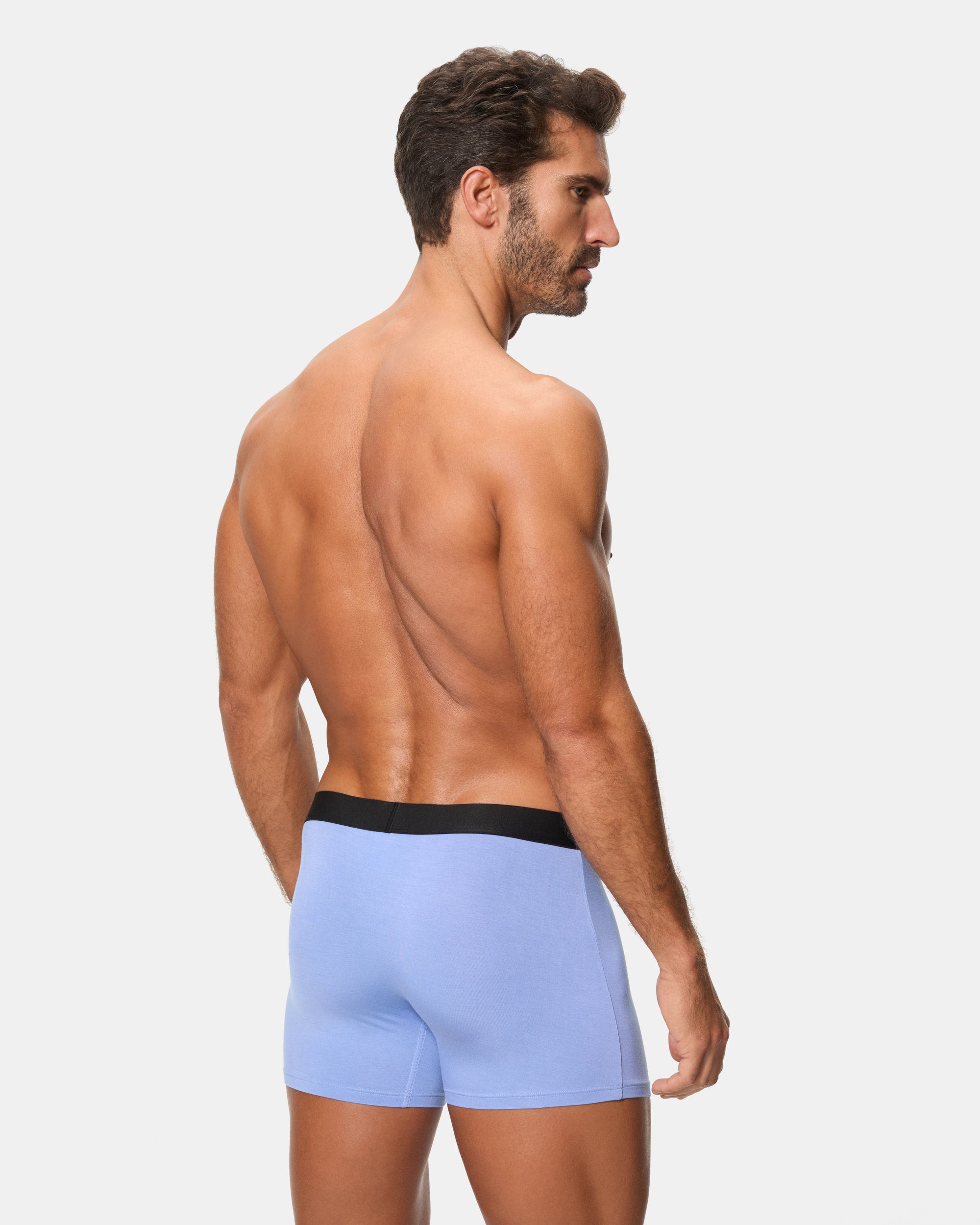 Este pack de 2 bóxers cerrados para hombre, en azul oscuro y lavanda, está confeccionado con bambú ultra suave, lo que lo hace ideal para quienes buscan suavidad y comodidad. Su tejido es transpirable y fresco, manteniendo la piel cómoda durante todo el día. Las costuras planas y la falta de etiquetas evitan cualquier roce incómodo, mientras que su cintura suave y elástica ofrece un ajuste perfecto sin apretar.