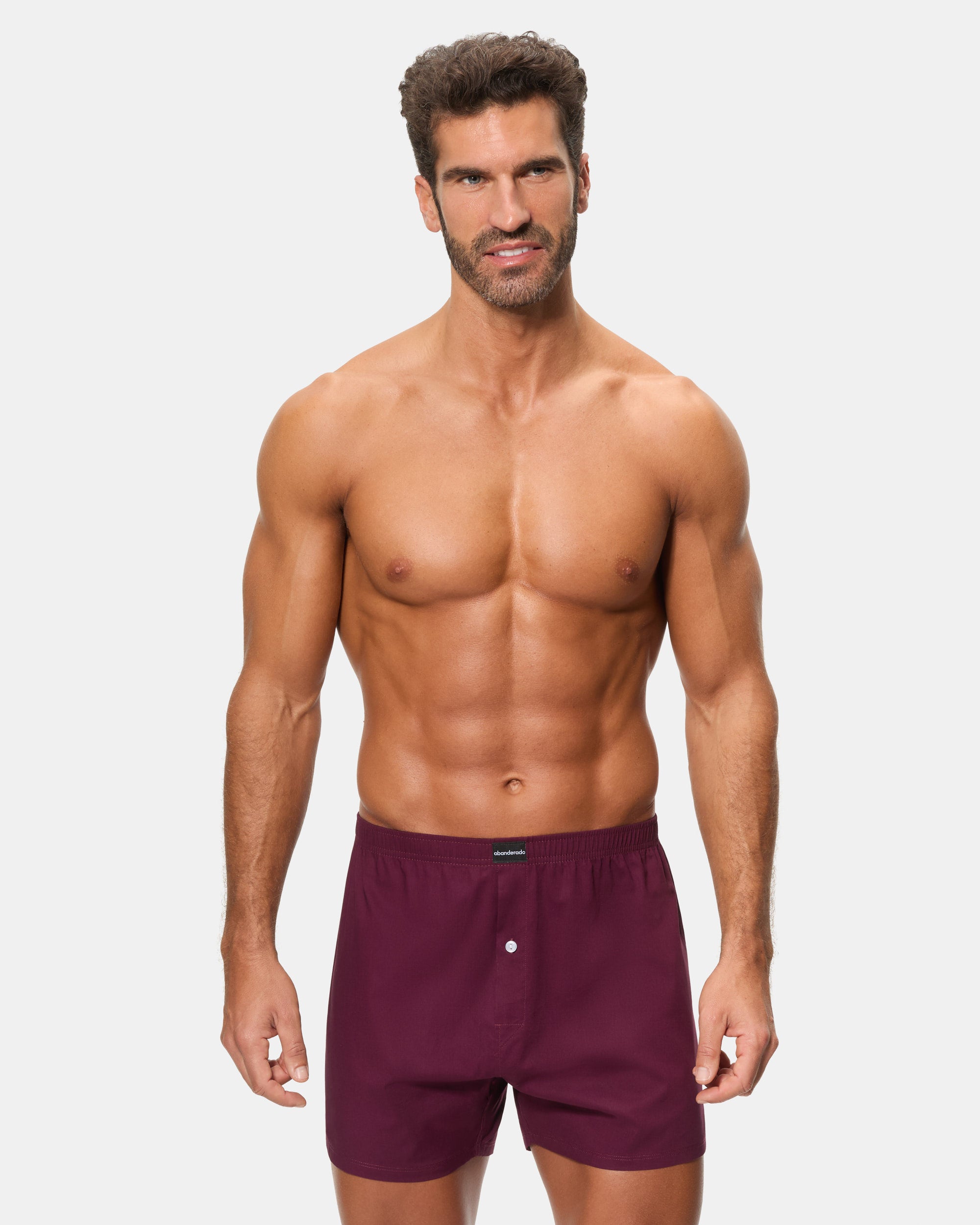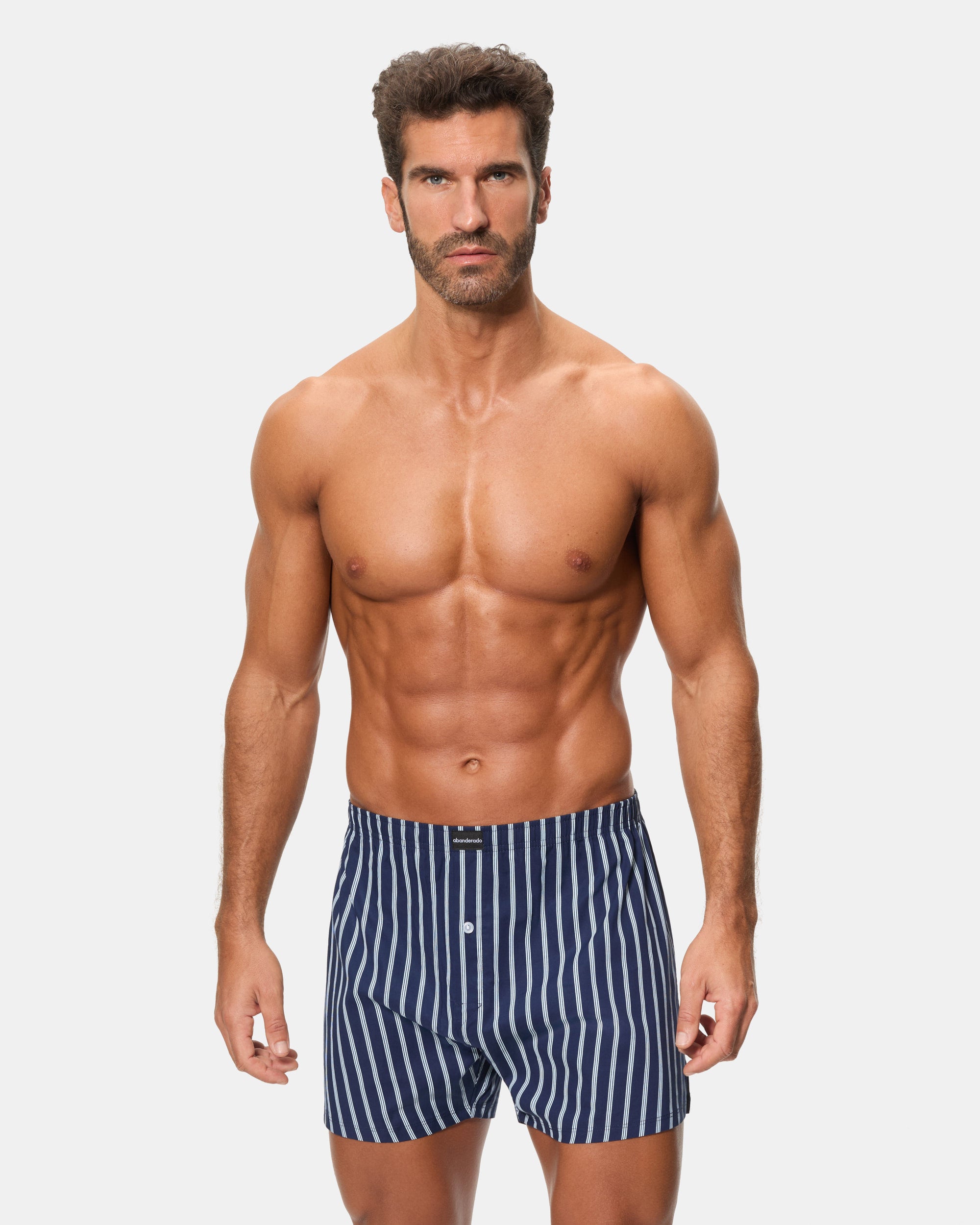 Pack 2 Bóxers Tela 100% Algodón Estampados Rayas Azules y Granate Hombre