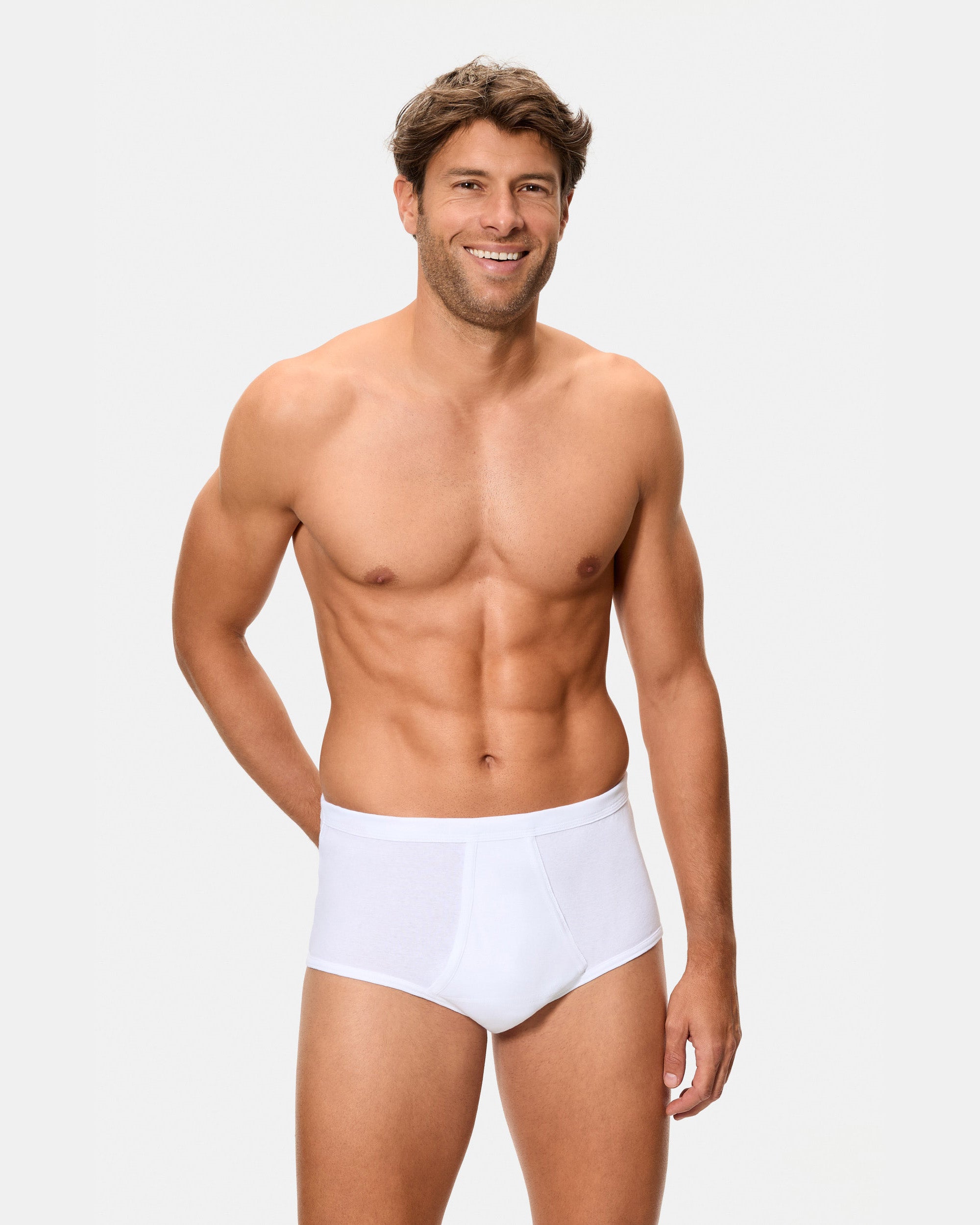 Este pack de 2 braslips abiertos para hombre en color blanco está confeccionado en 100% algodón de máxima calidad, con un tejido canalé 1x1 que proporciona una comodidad excepcional. Su patrón clásico de slip alto y apertura frontal aseguran un ajuste perfecto, mientras que la cinturilla con goma recubierta ofrece un soporte adicional sin apretar. Ideal para quienes buscan una prenda básica, cómoda y transpirable para el día a día.