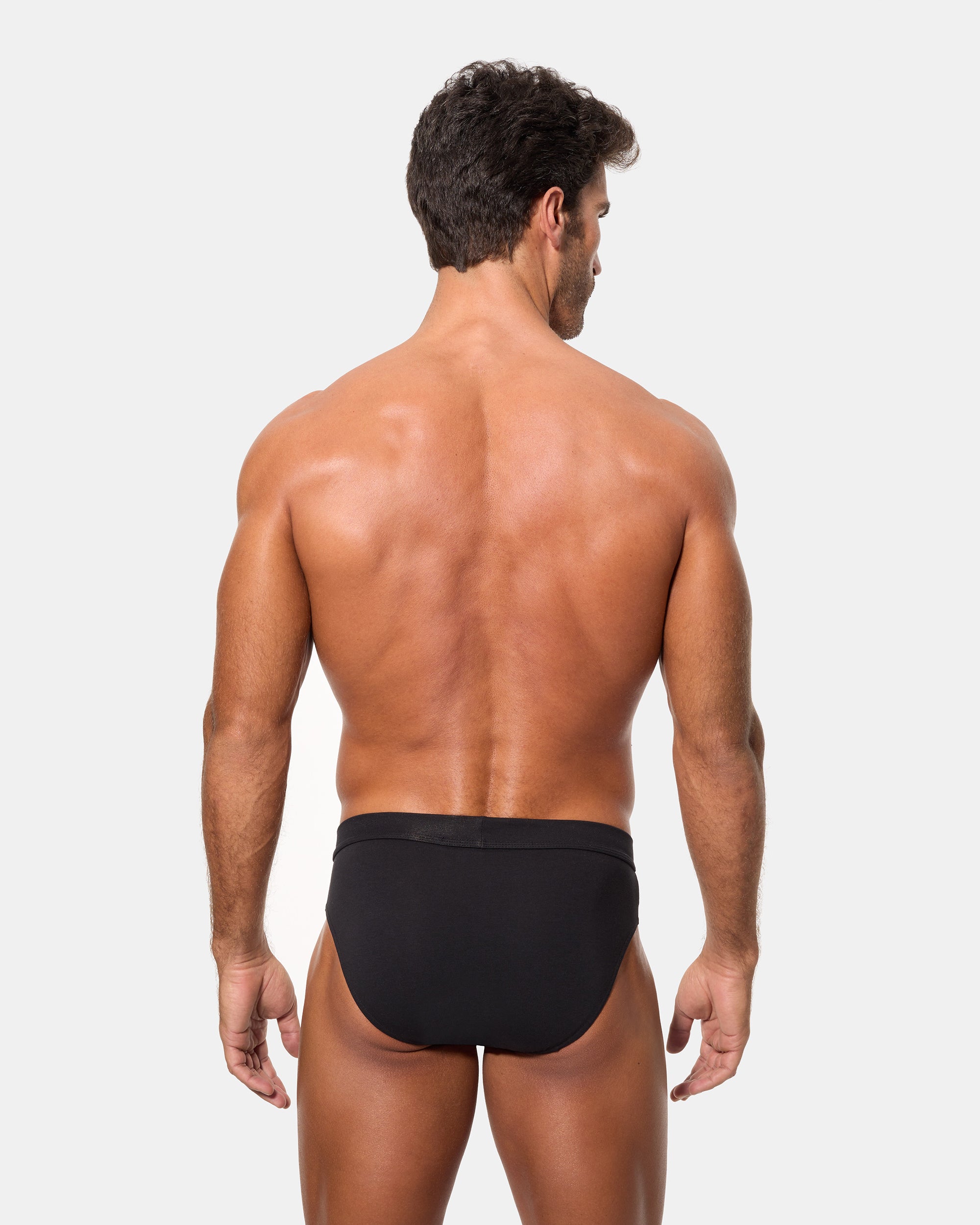 Este pack de 2 slips abiertos para hombre está confeccionado en algodón elástico, brindando un ajuste perfecto y cómodo. Los colores negro y gris vigoré se combinan en un diseño sencillo pero elegante, con una cinturilla suave que no aprieta ni deja marcas en la piel. Ideal para quienes buscan comodidad durante todo el día.