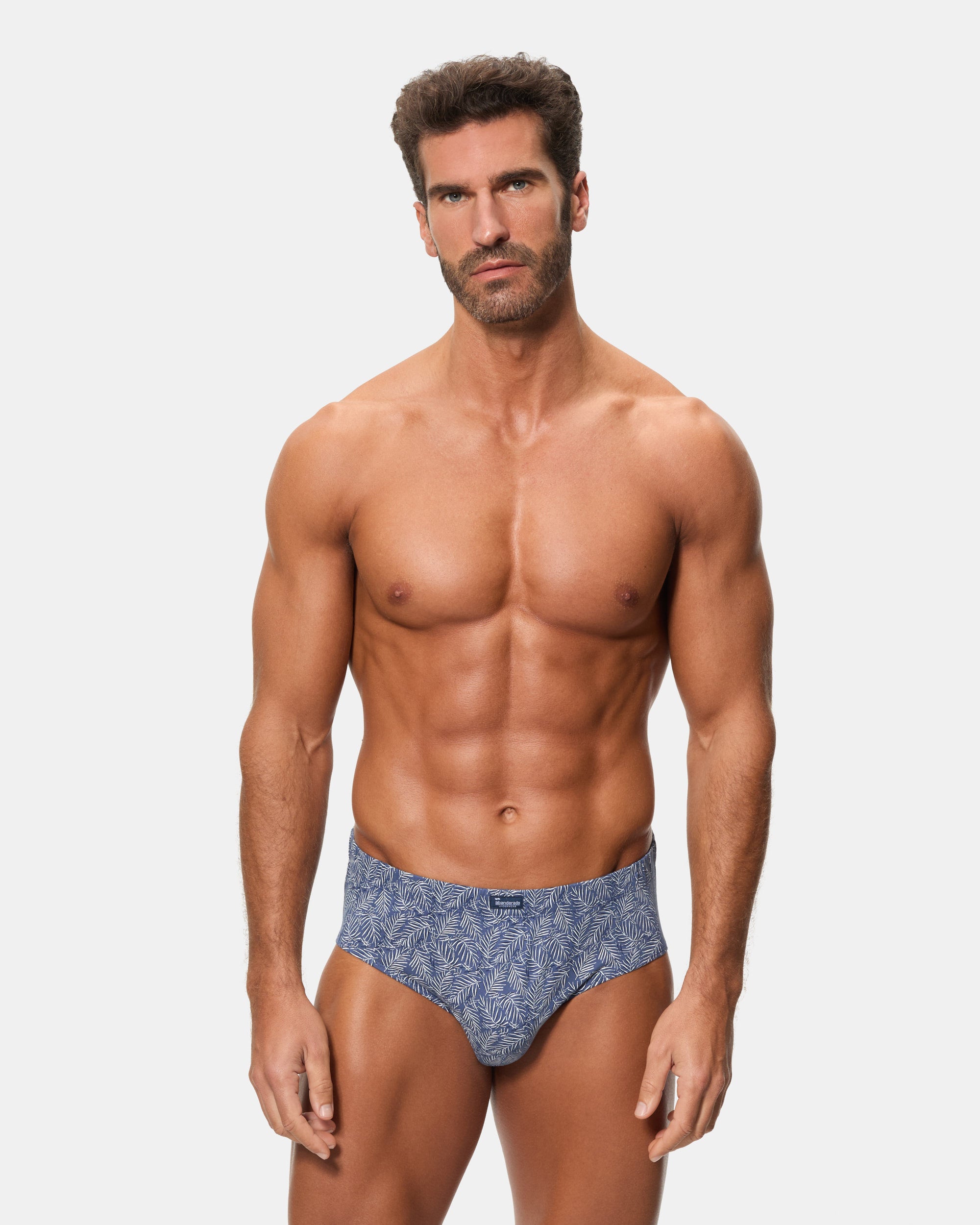Confort y estilo se combinan en este pack de 3 slips semicortos, confeccionados en algodón 100%. Su estampado en tonos azules con palmas y puntos le da un toque fresco y original, mientras que la cinturilla de goma recubierta asegura un ajuste cómodo y duradero. El tejido de punto liso garantiza una buena transpiración, manteniéndote fresco y cómodo durante todo el día.