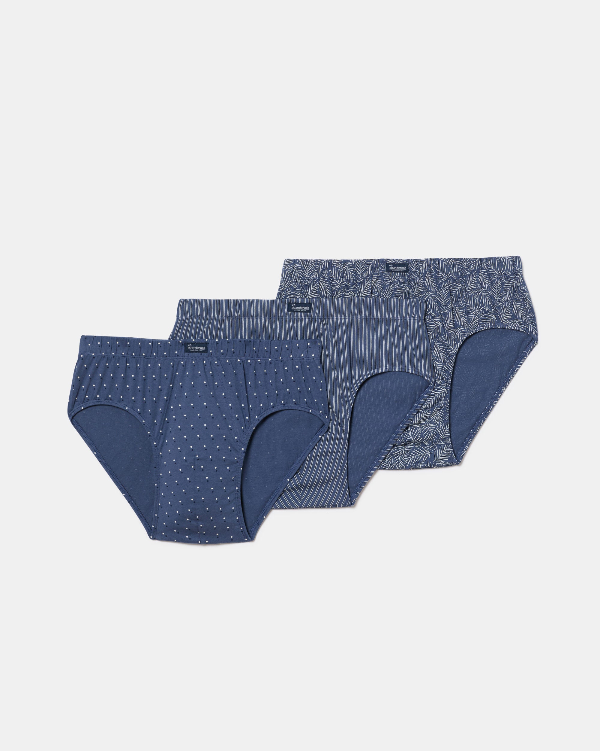 Pack 3 Slips Semicortos Algodón 100% Estampados azul palma y puntos hombre