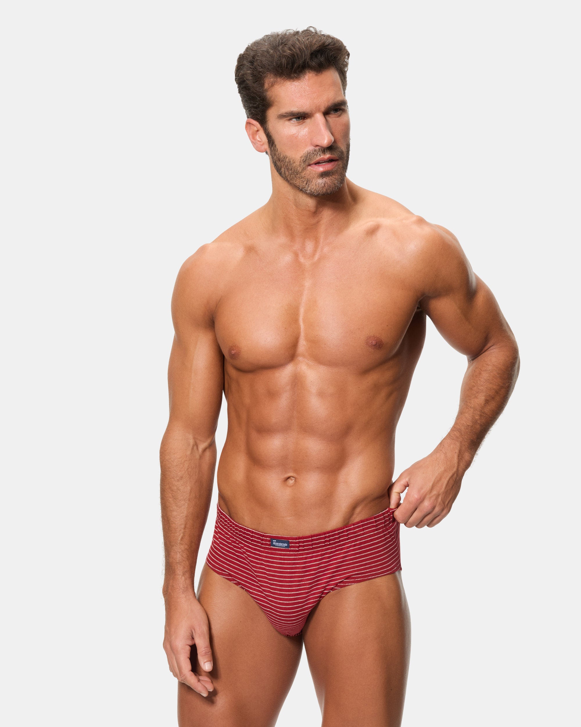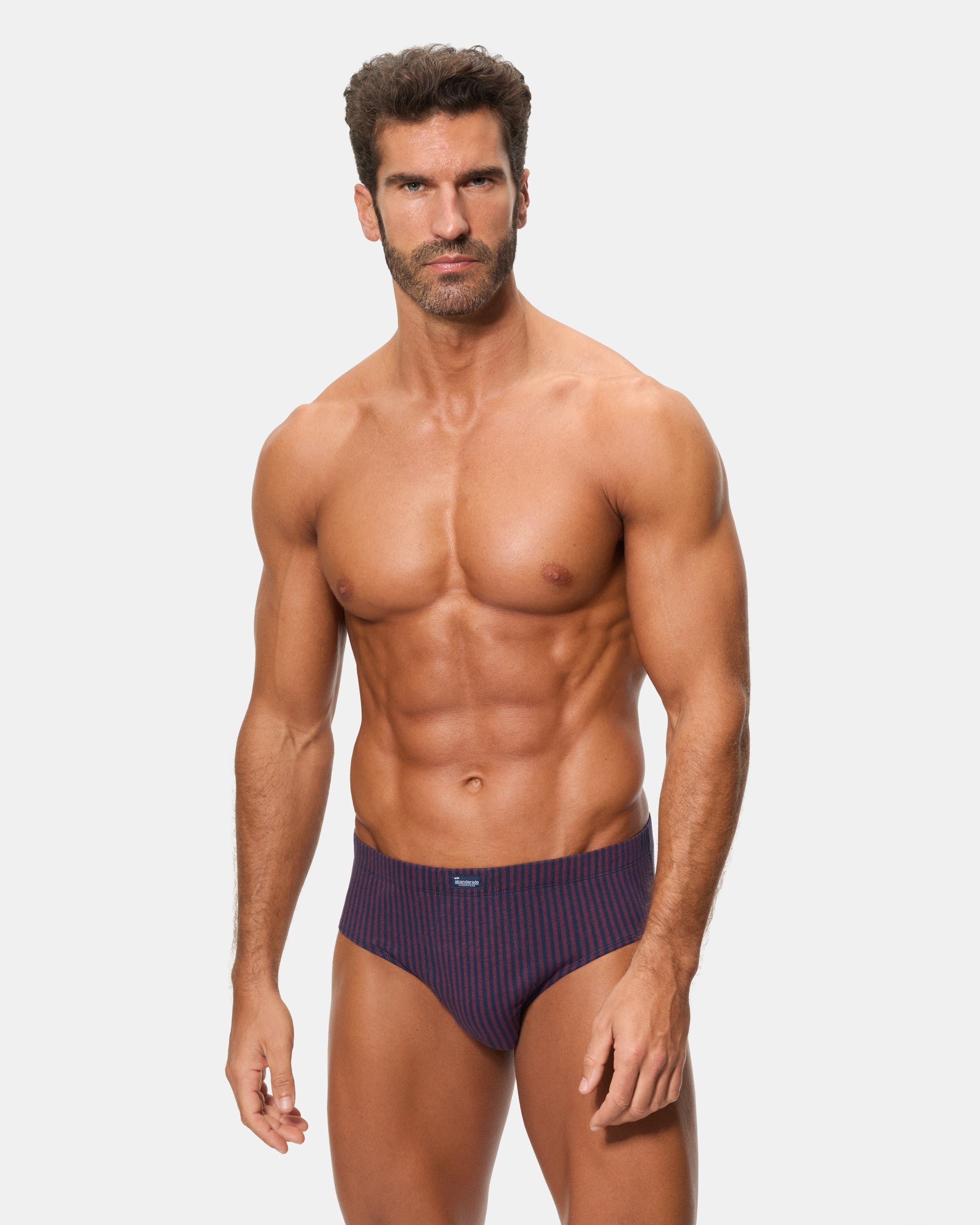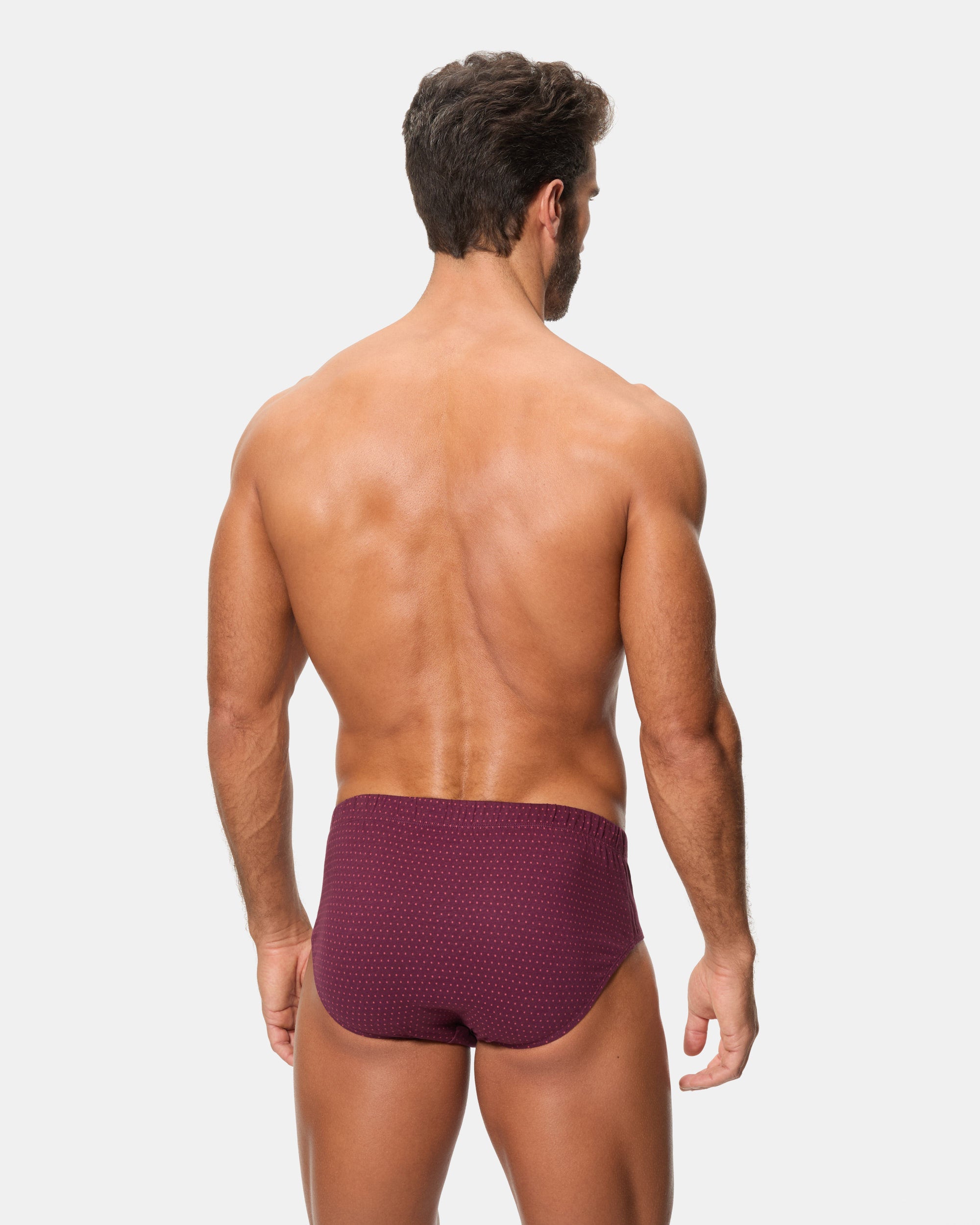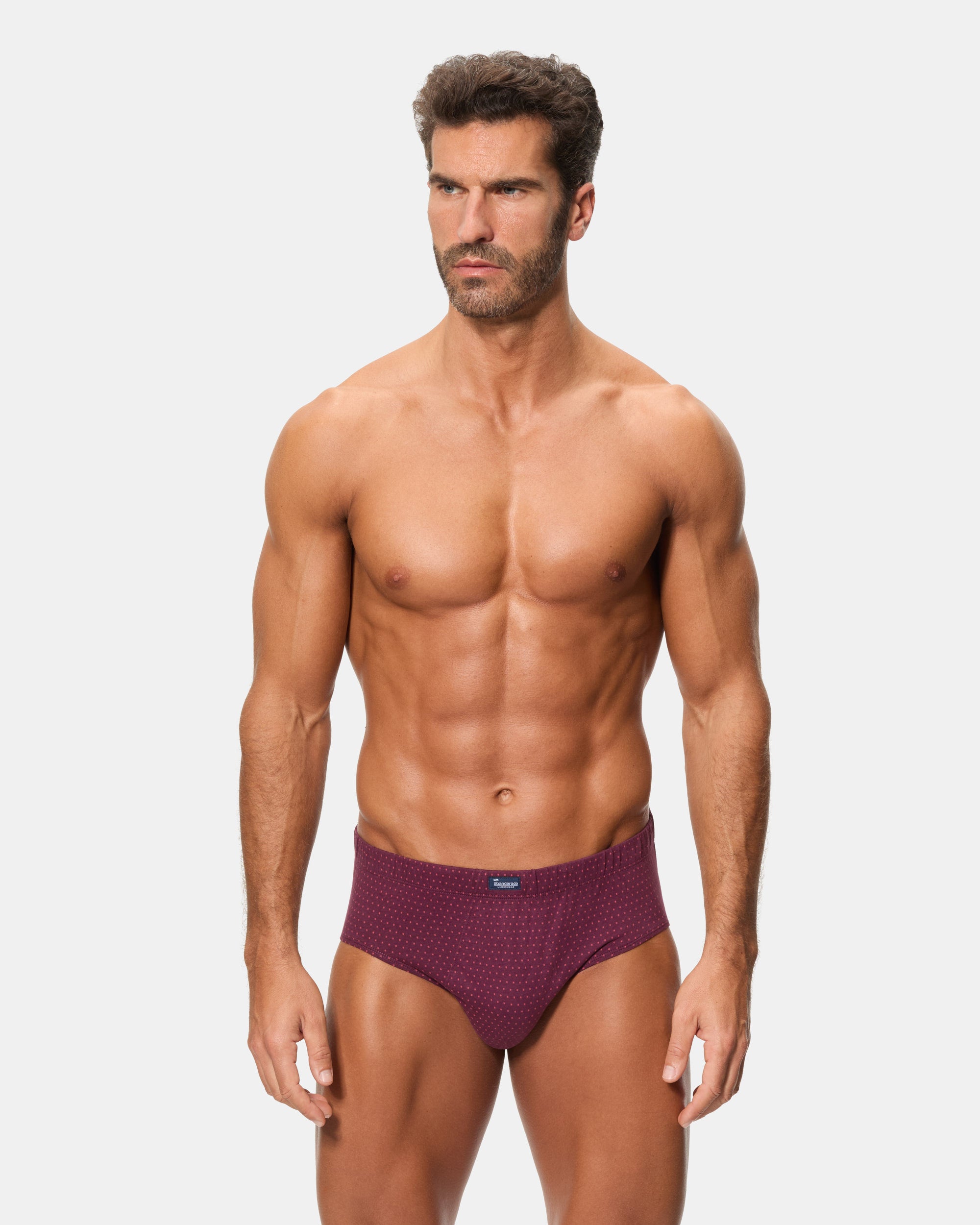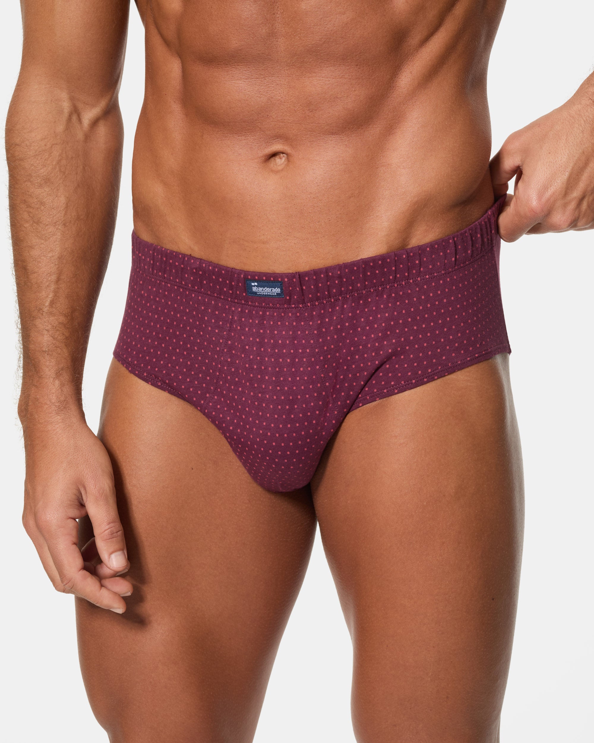 Este pack de 3 slips semicortos, confeccionados en algodón 100%, ofrece un diseño clásico con un toque de elegancia. El estampado en tonos azul y vino da un aire moderno y masculino. La cinturilla con goma recubierta proporciona un ajuste perfecto, y el tejido de punto liso garantiza comodidad y transpirabilidad durante todo el día.