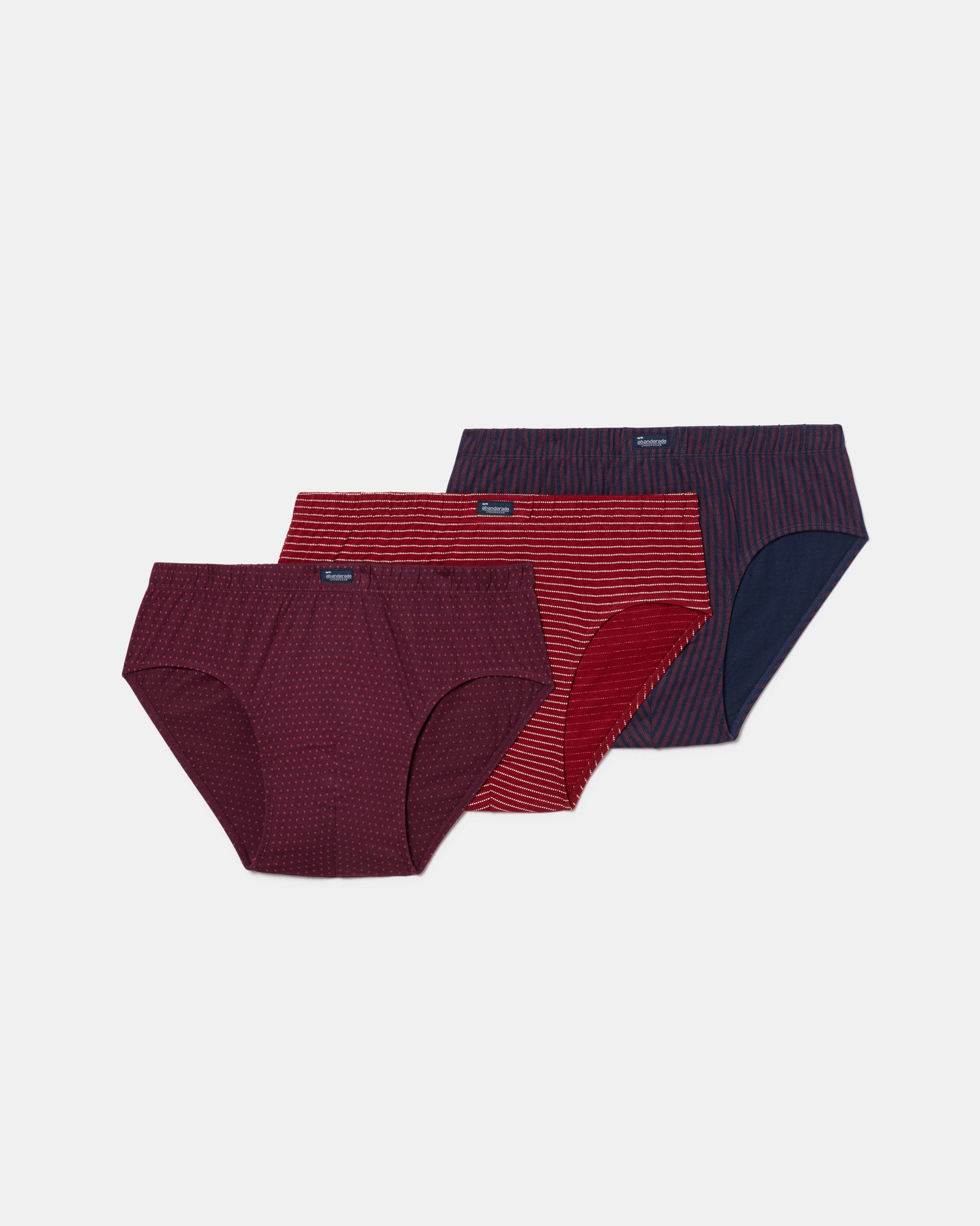 Pack 3 Slips Semicortos Algodón 100% Estampados azul y vino hombre