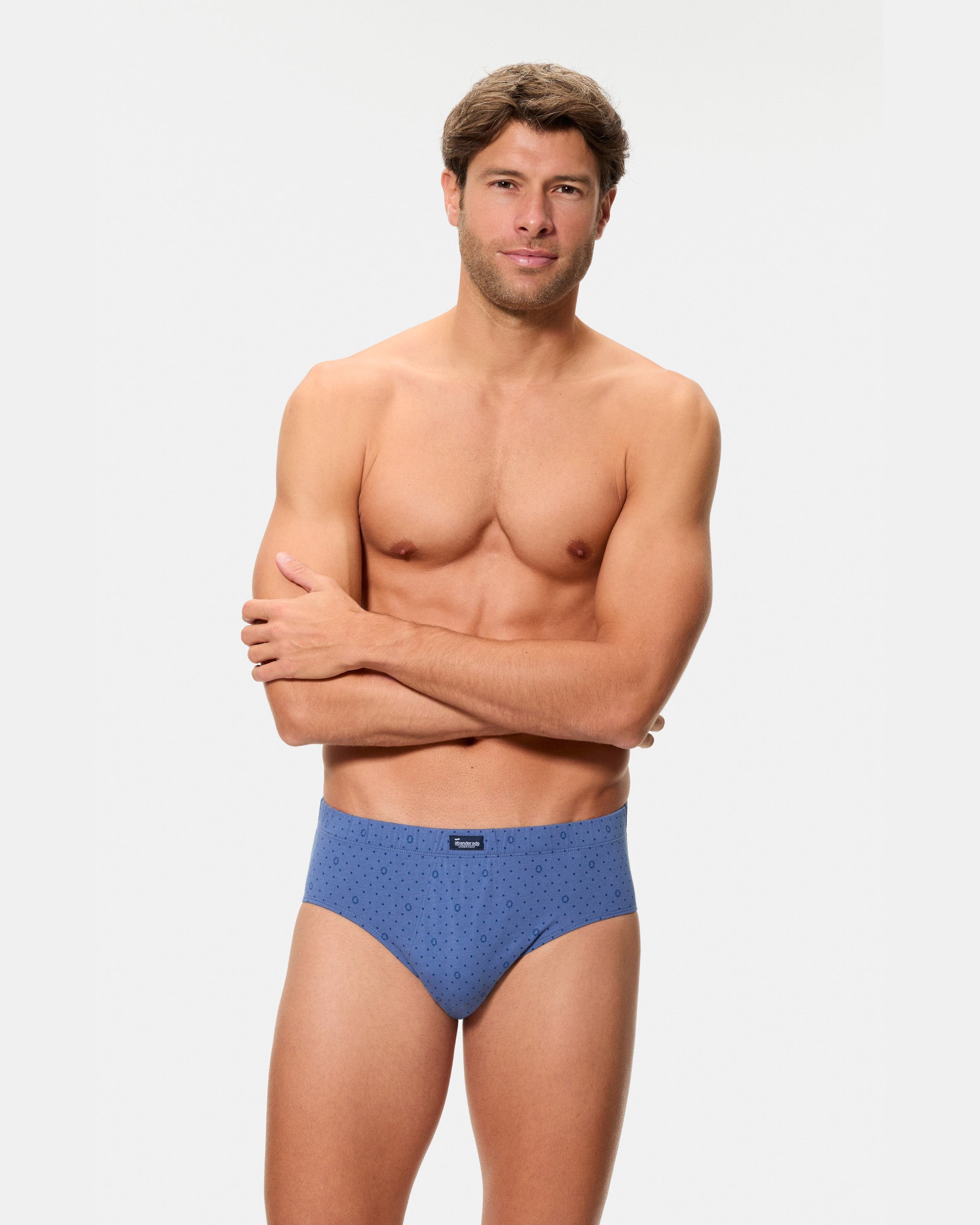 Pack de tres slips semicortos de hombre con estampados tonos azules