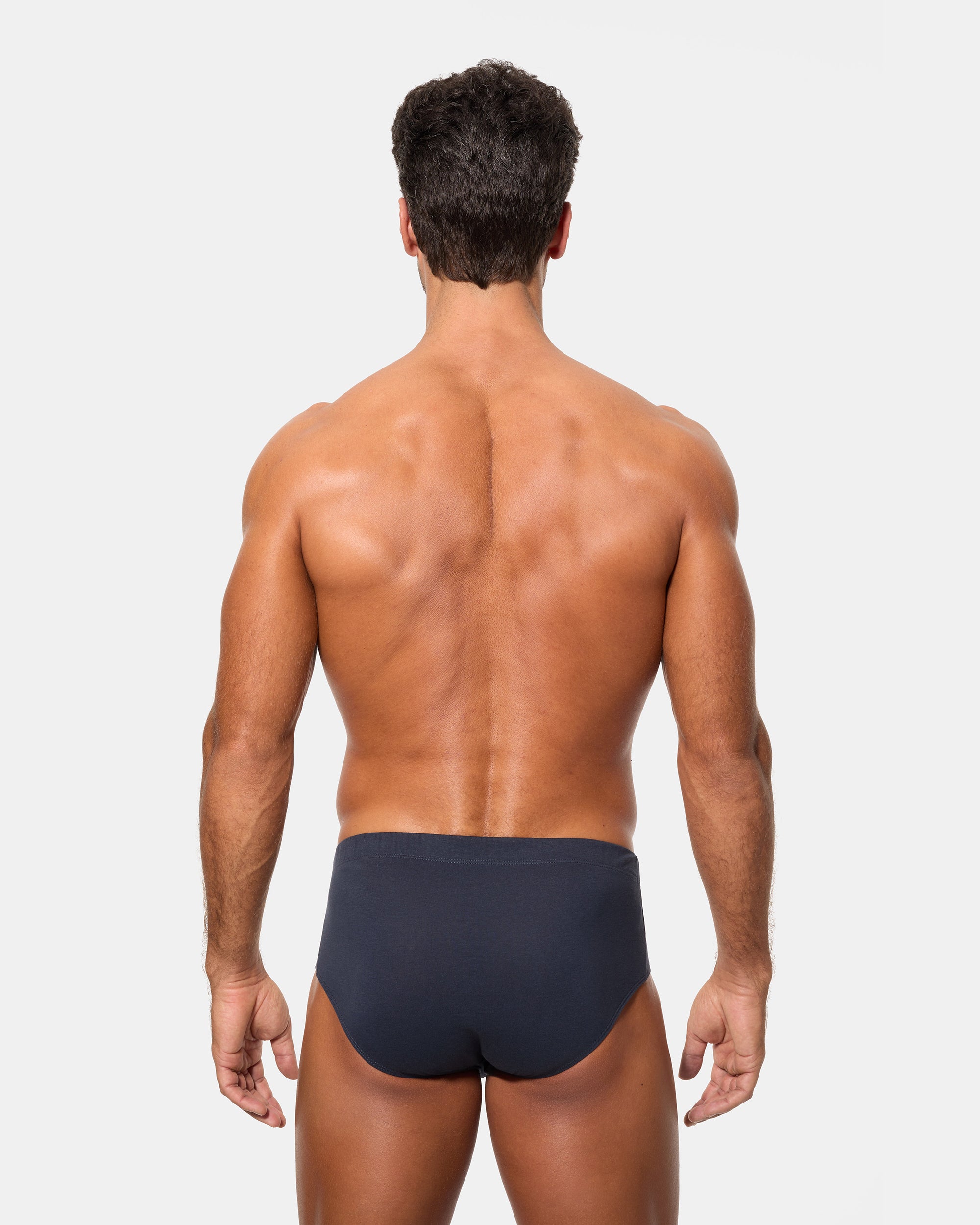 Este slip semicorto para hombre color azul marino, está confeccionado con algodón 100%, garantizando una comodidad excepcional y un ajuste perfecto. Su diseño cerrado y patrón clásico, junto con la cintura con goma recubierta, asegura una gran sujeción y confort durante todo el día. Ideal para quienes buscan una prenda de alta calidad para su día a día.