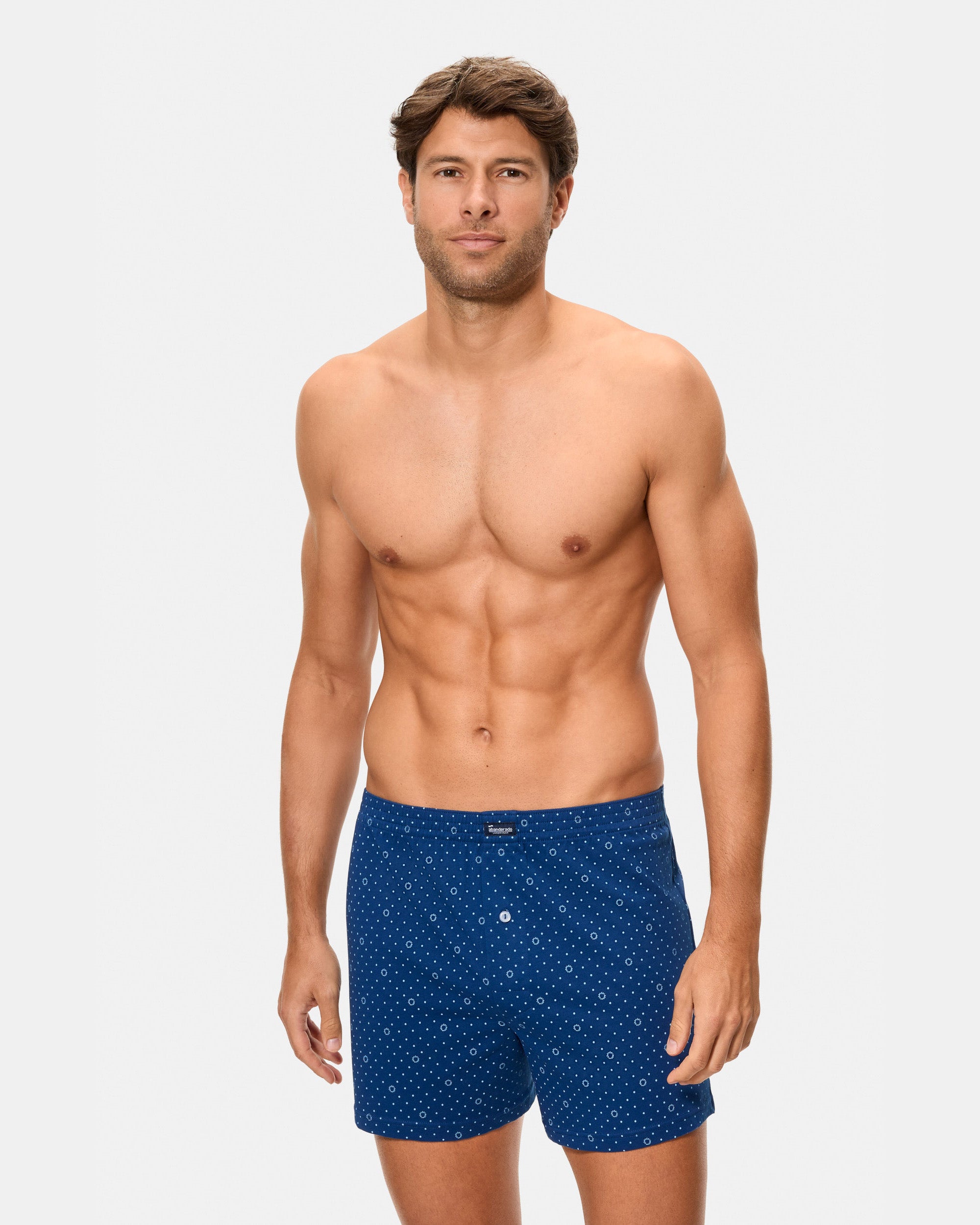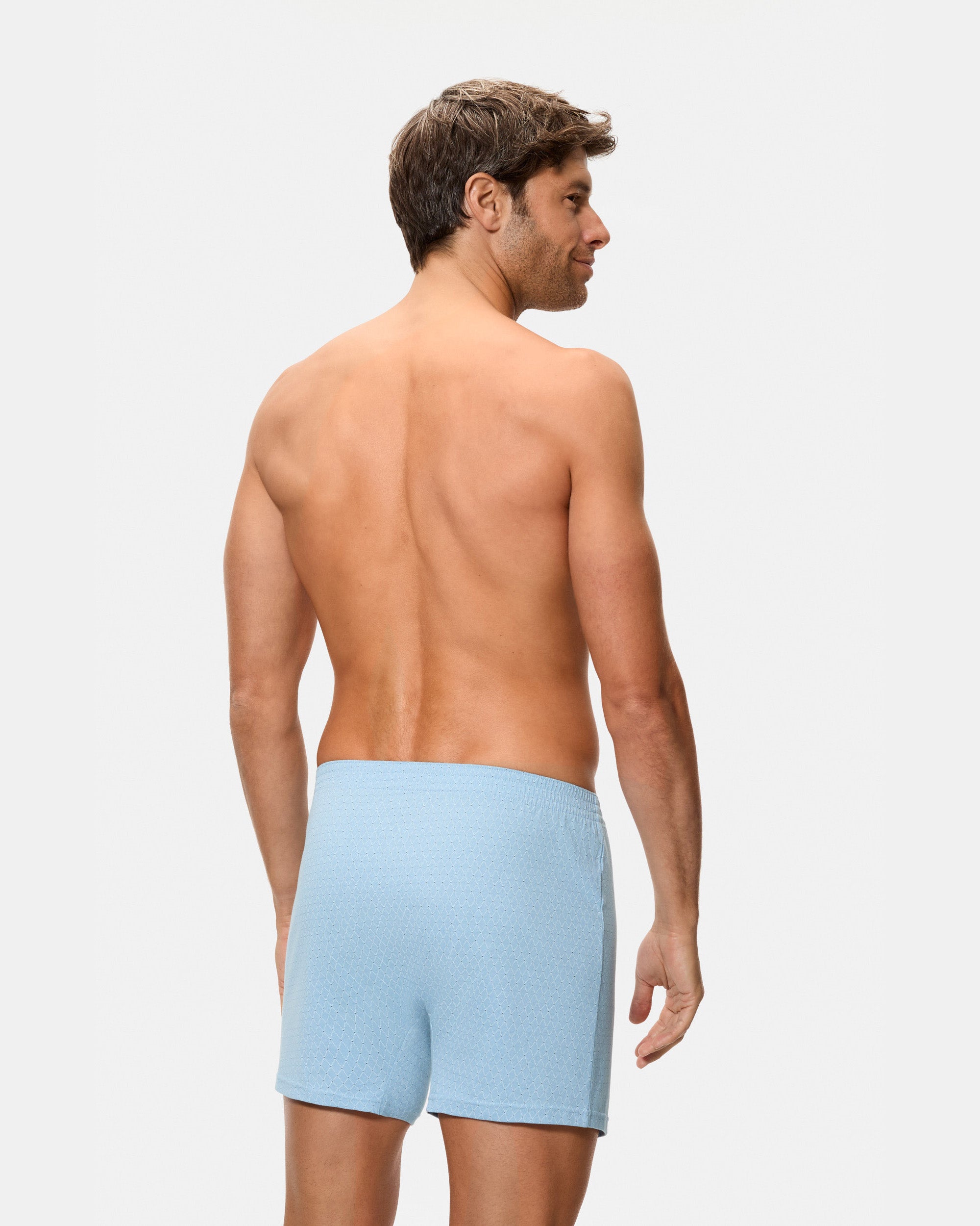 Pack de 2 bóxers de punto para hombre en tonos azules, confeccionados en algodón 100% para una comodidad natural. Su patrón clásico se combina con un estampado discreto y masculino, mientras que la bragueta con botón aporta practicidad. El tejido de punto ayuda a una mejor transpiración para un uso diario confortable.