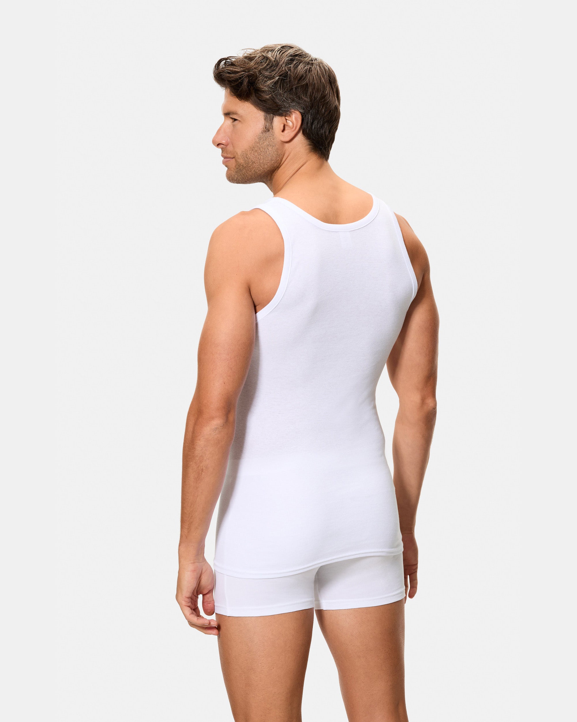 Camiseta de Tirantes Clásica Canalé Algodón 50% Poliester 50% blanca hombre