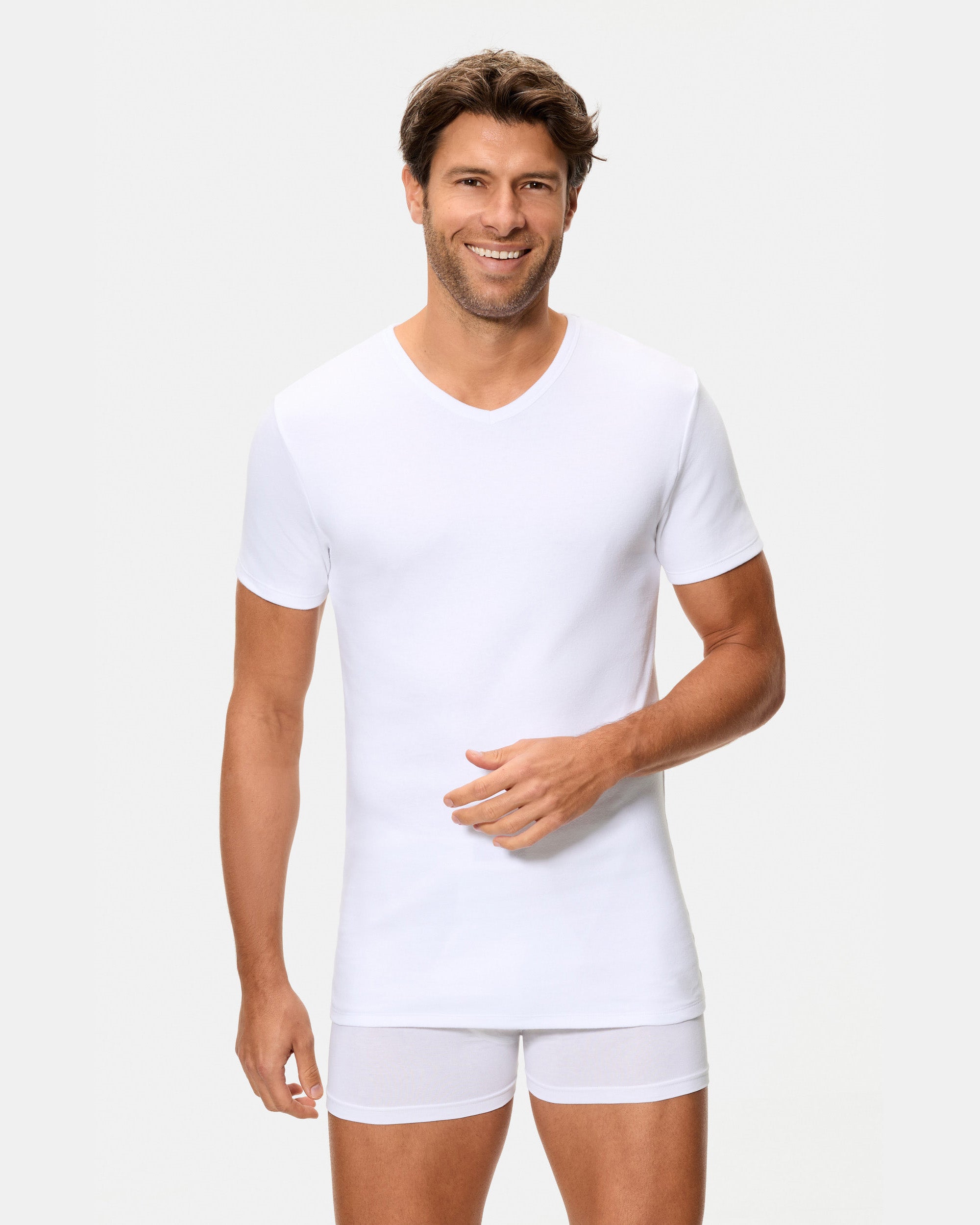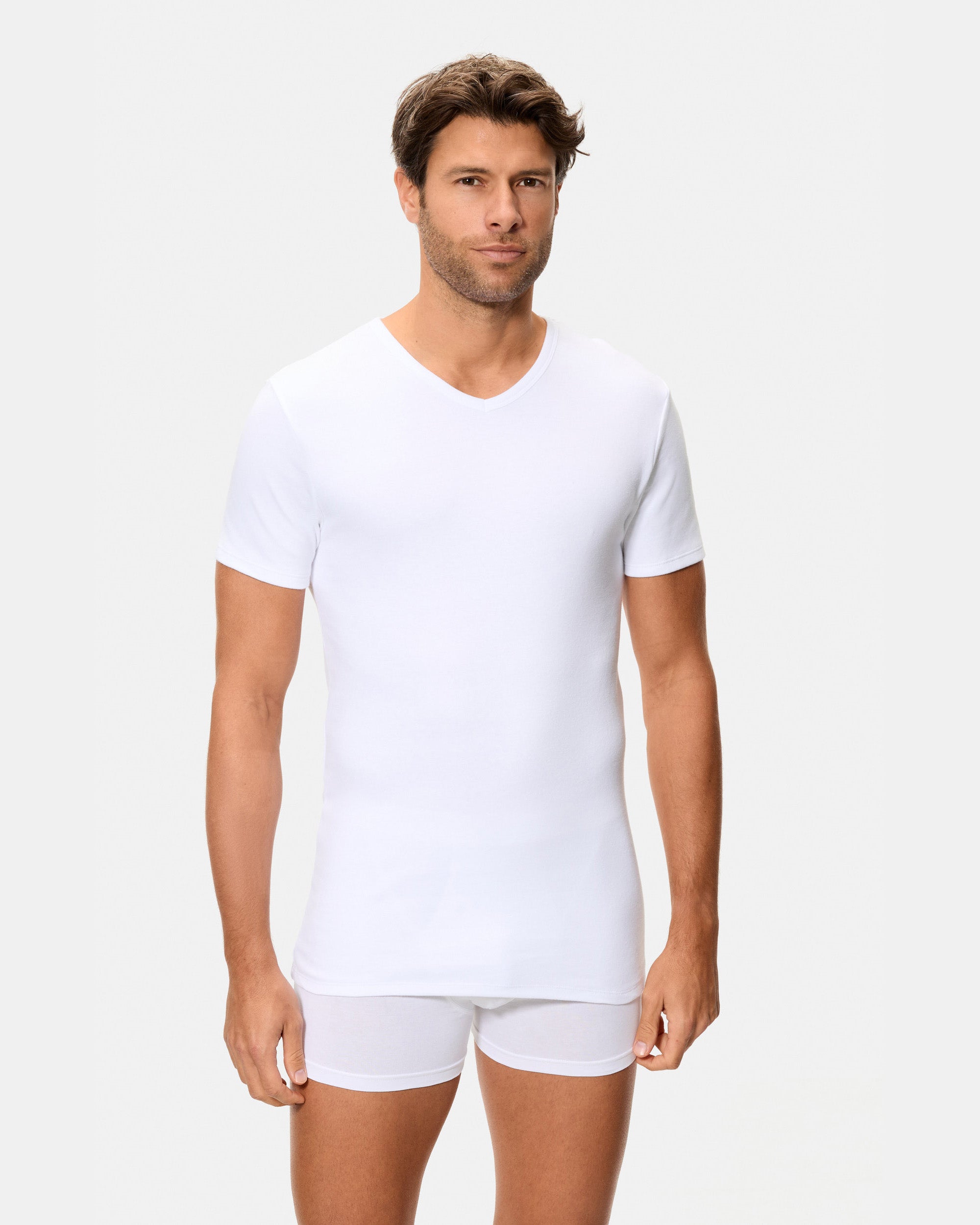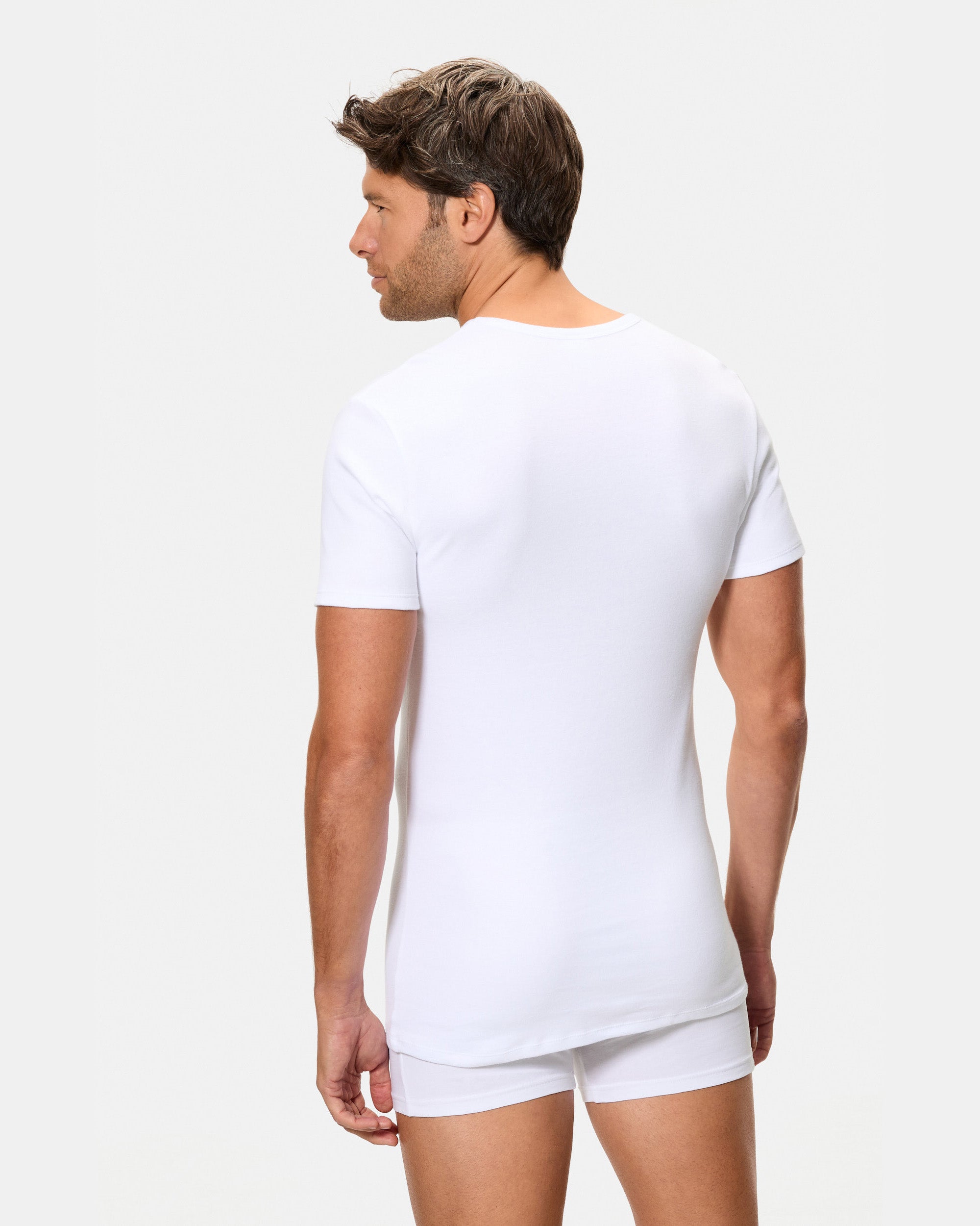 Camiseta Térmica Manga Corta Cuello Pico Algodón 100% blanca hombre