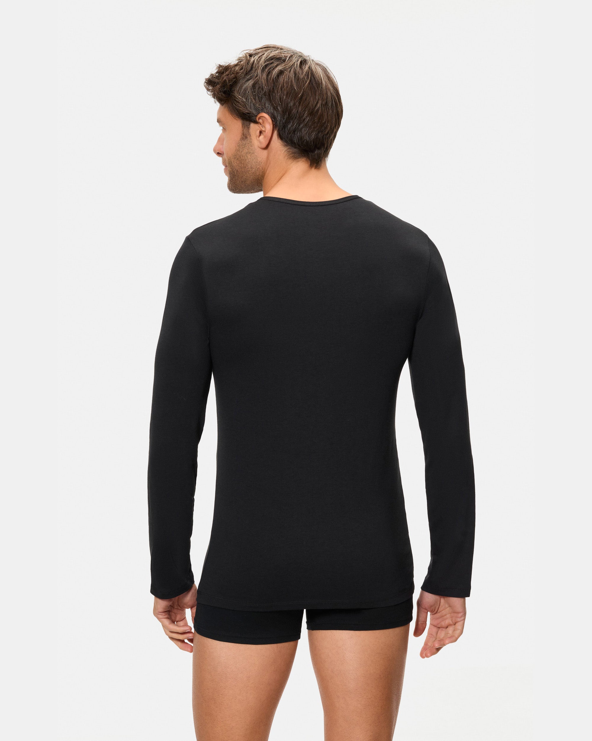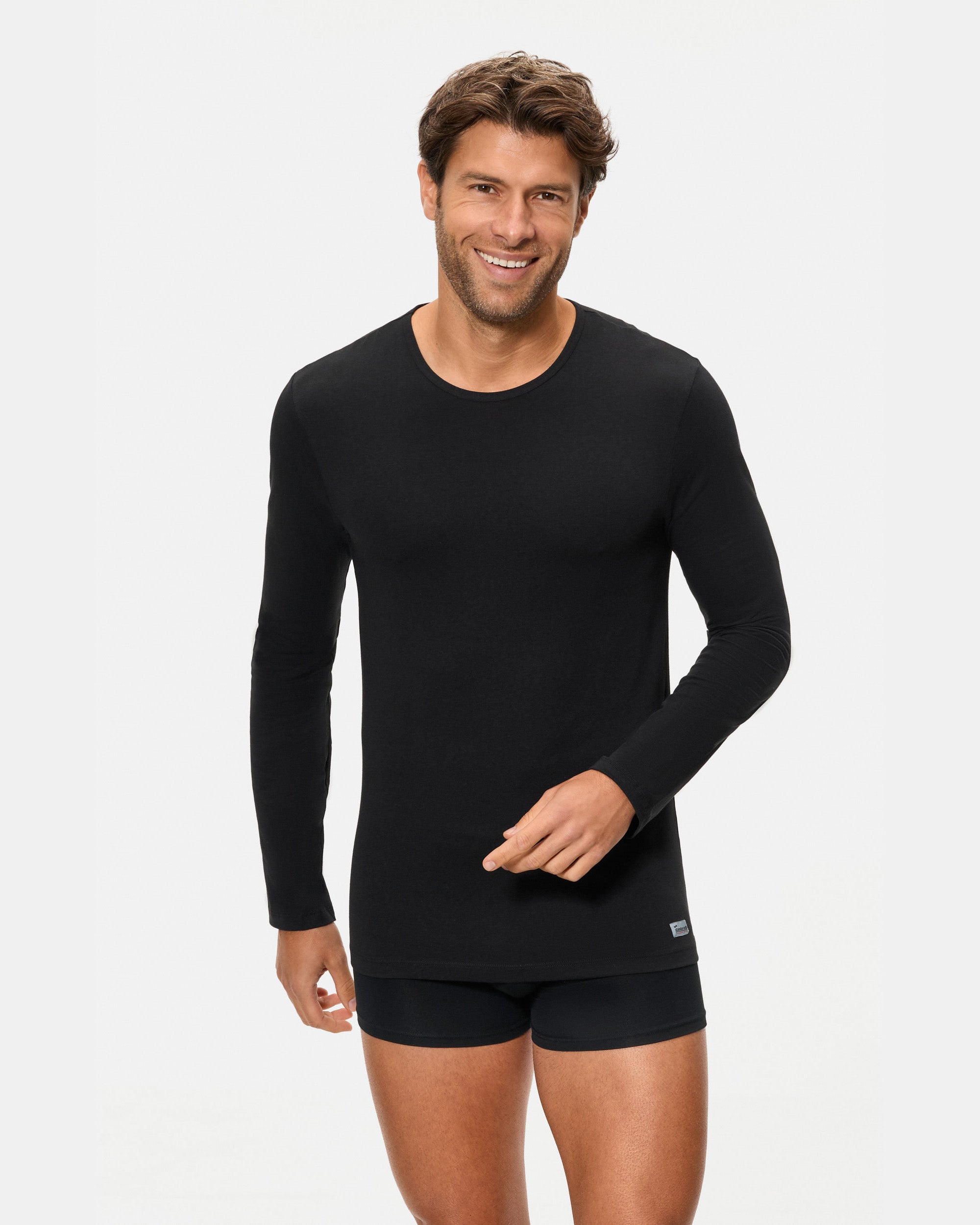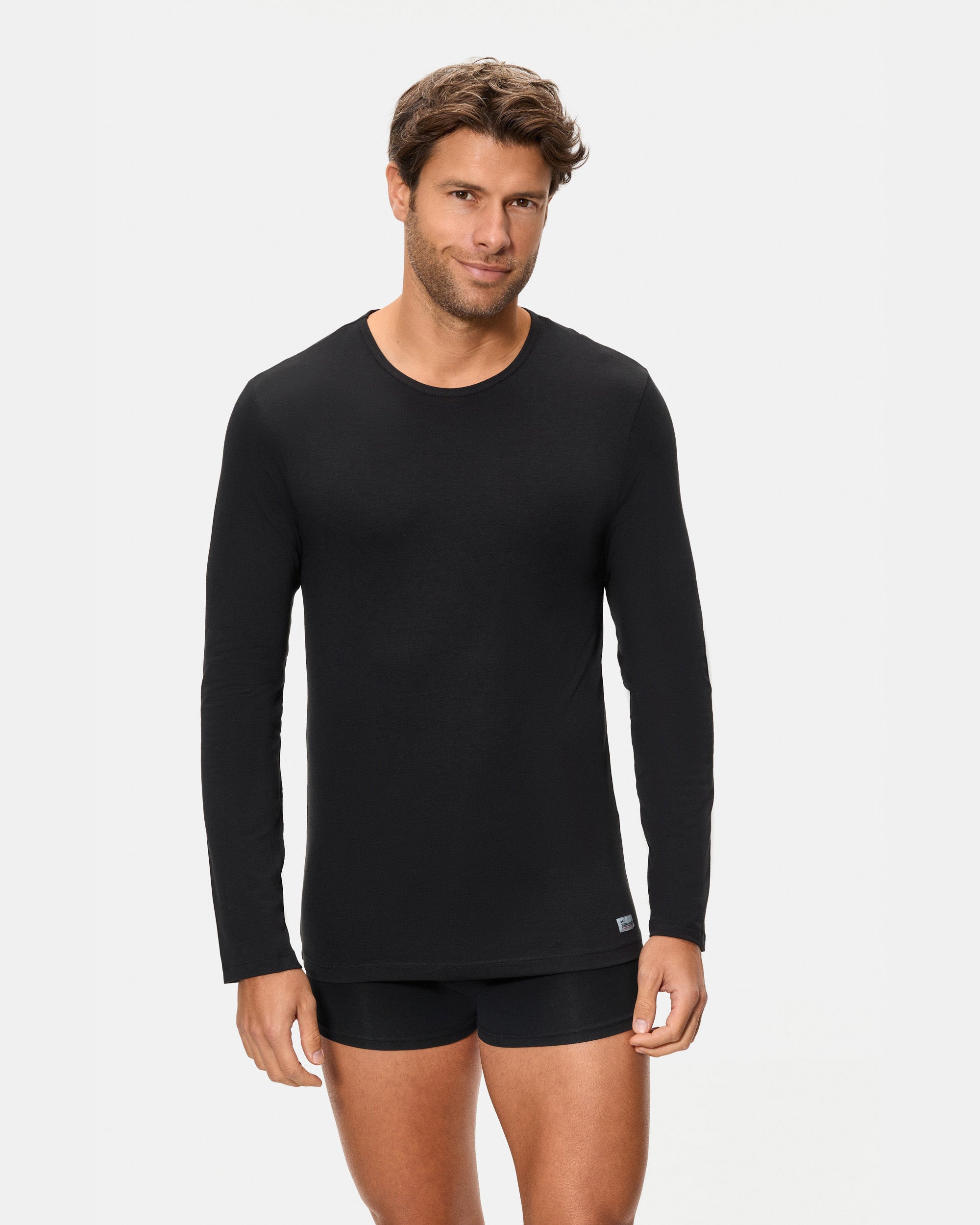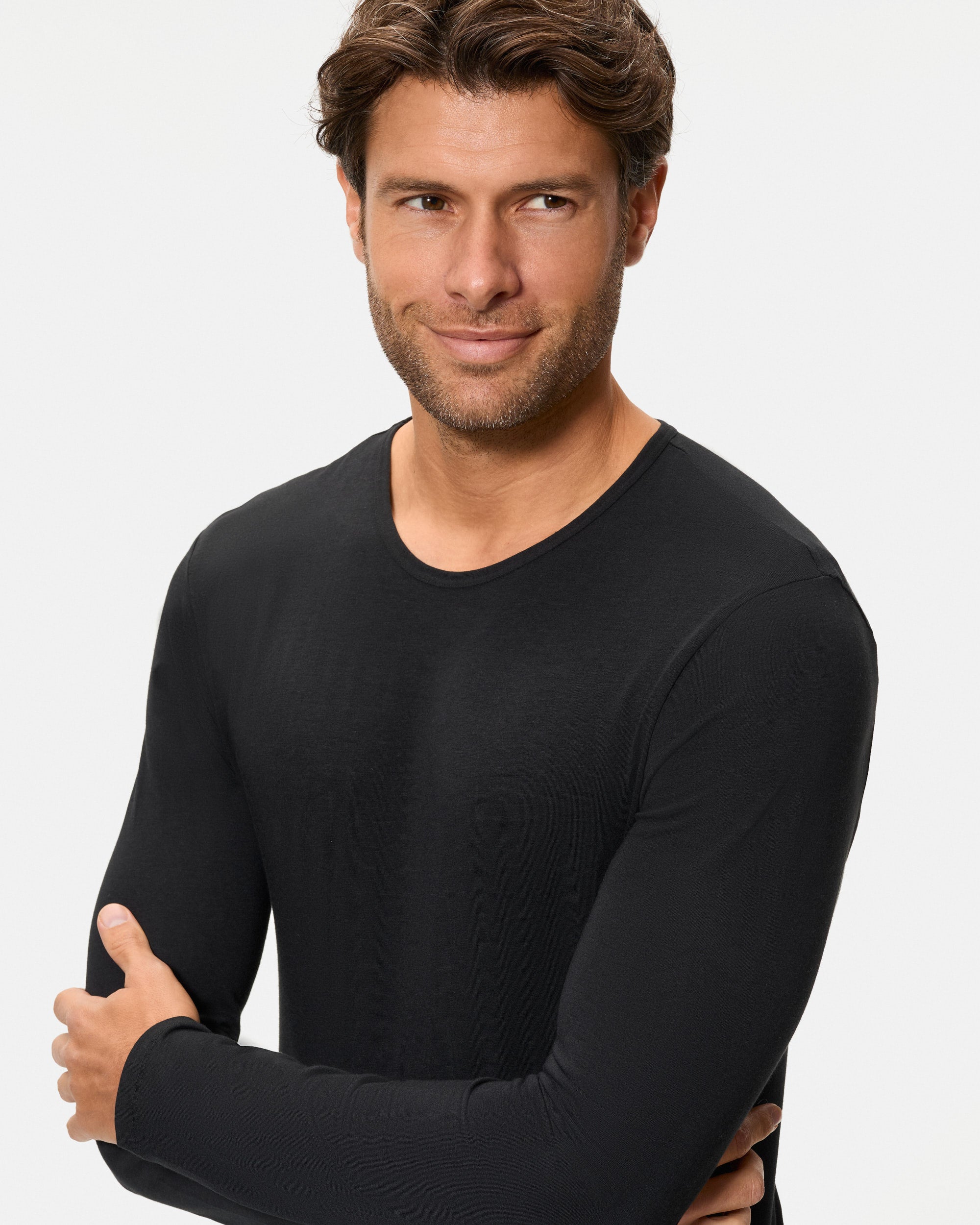 T-shirt térmica para homem de manga comprida e gola redonda Termaltech preta