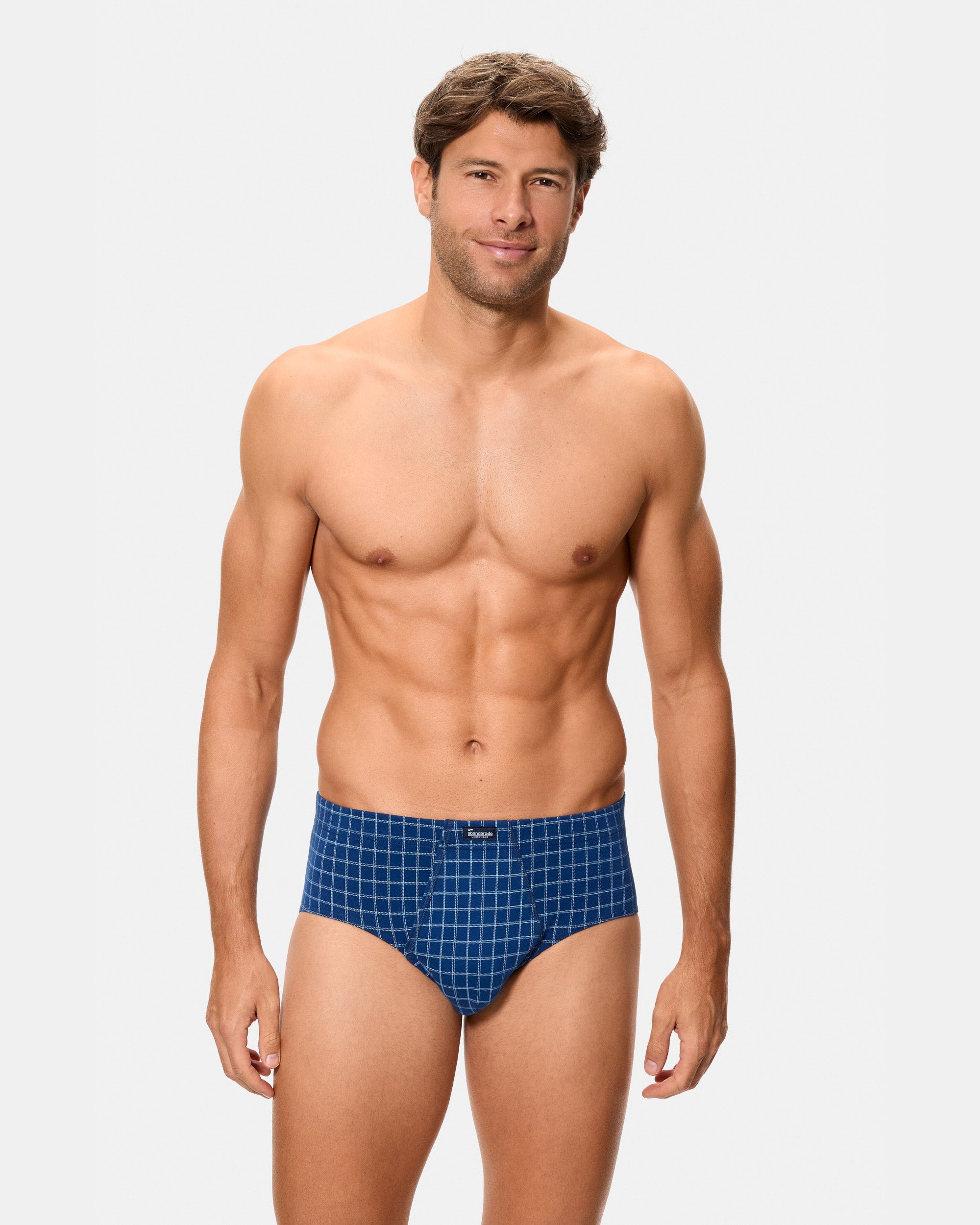 Elige un básico funcional con un toque de diseño: pack de 3 slips abiertos de hombre en azul, realizados en algodón 100%. El estampado geométrico aporta un estilo moderno sin perder la esencia clásica, y la abertura frontal mejora la comodidad. El punto liso favorece la transpiración para acompañarte durante todo el día.
