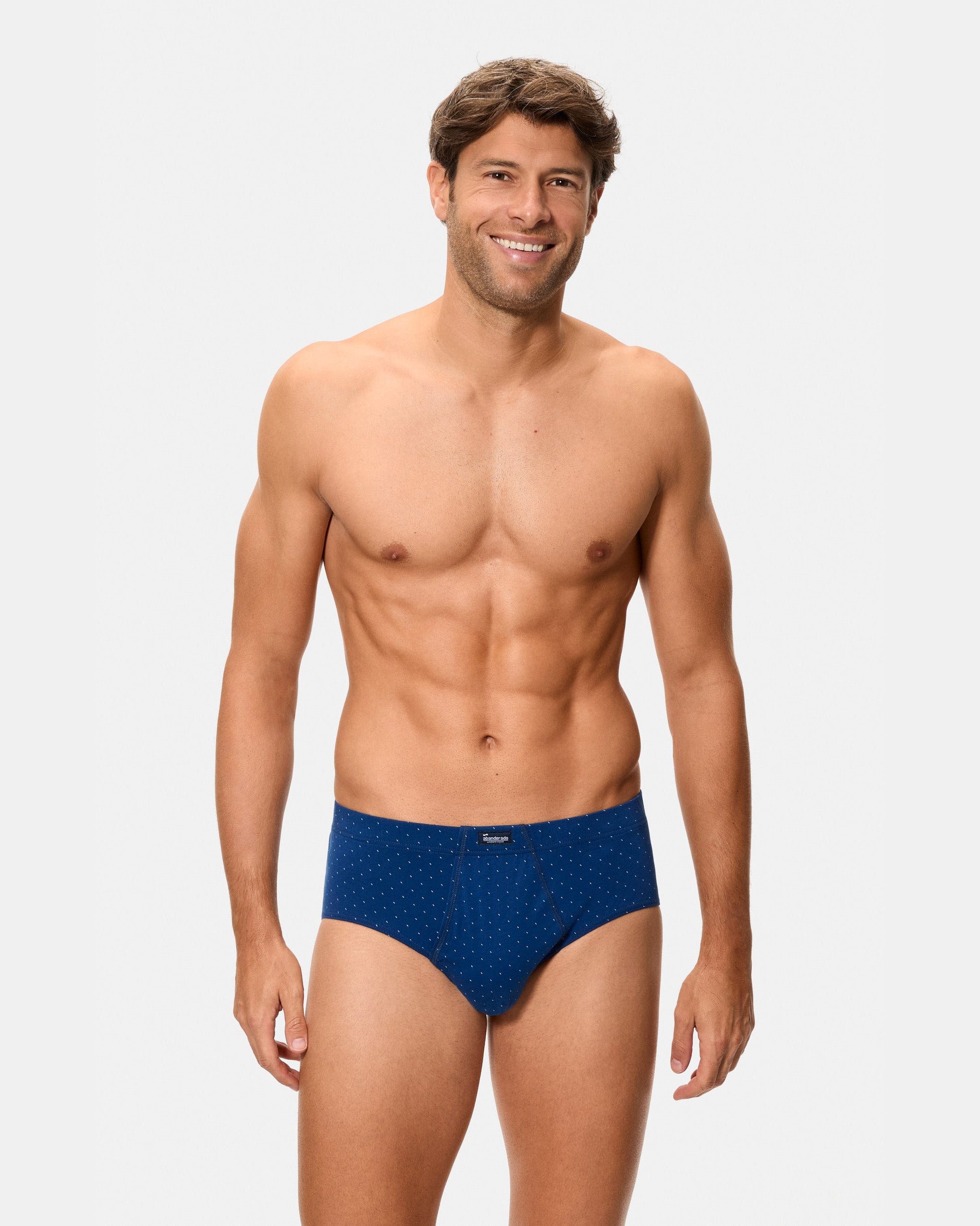 Pack de tres slips abiertos de hombre con estampados geométrico azul